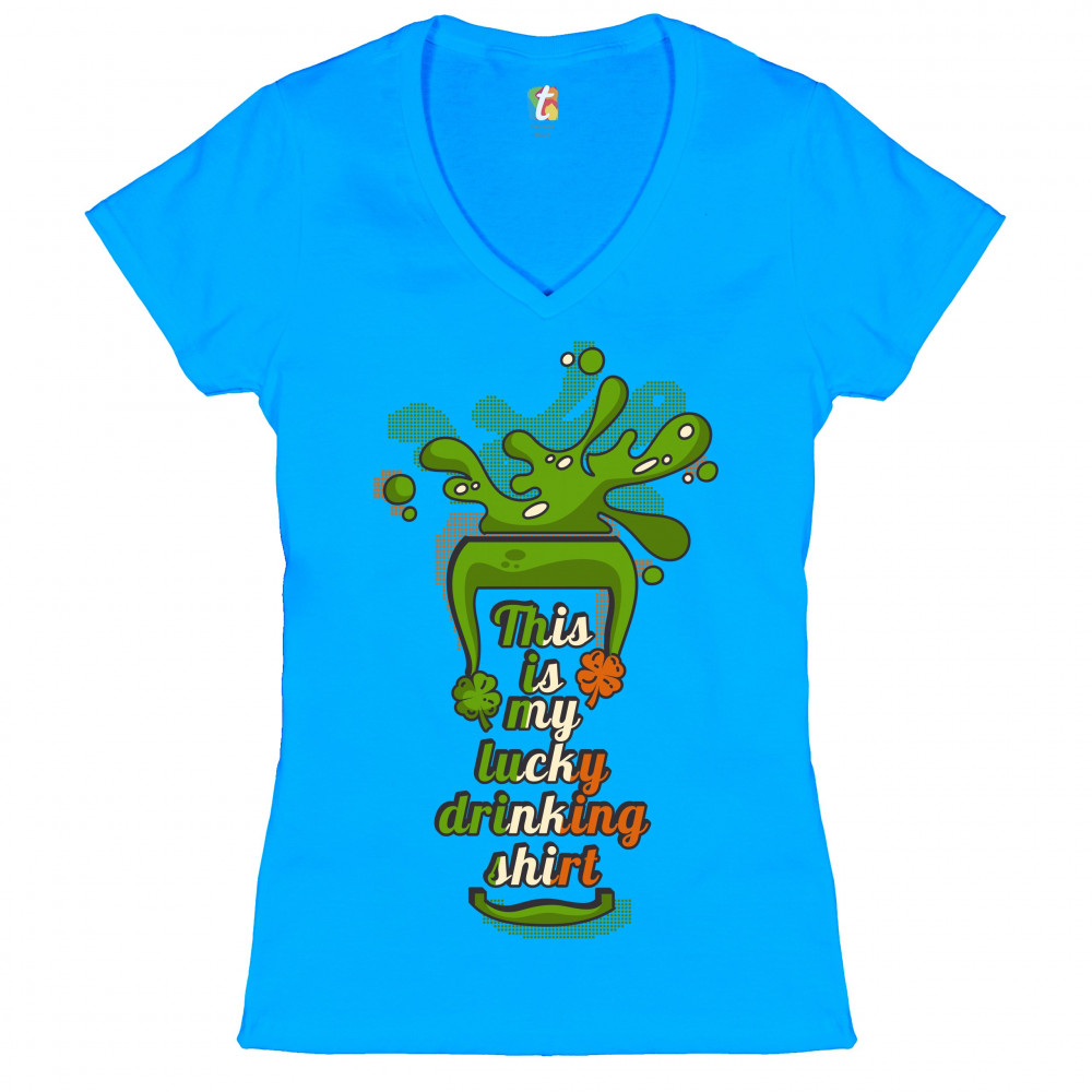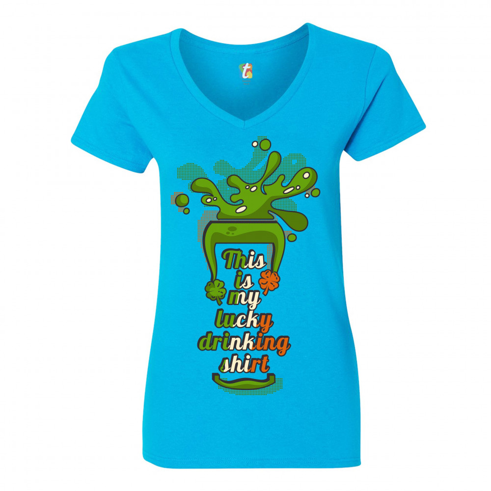 THIS IS MY LUCKY DRINKING SHIRT women's v-neck t-shirt st. patrick's day tee turquoise