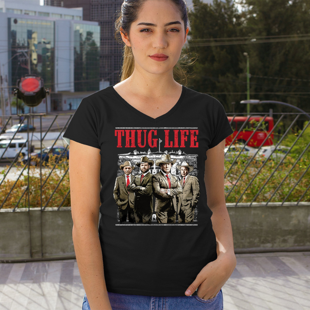 Make a statement with the Thug Life T-shirt, a must-have for every Republican and Trump supporter who stands for America First. Designed for those who believe in We The People Have Spoken, this shirt is perfect for rallies, events, or everyday wear. Featuring bold imagery and high-quality materials, it's a tribute to conservative values, the Red Wave, and the party of common sense. Get yours today and show your patriotic spirit.