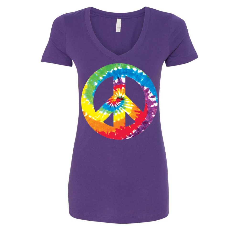 TIE DYE PEACE SYMBOL 80'S women's v-neck t-shirt hippie happiness love not war purple