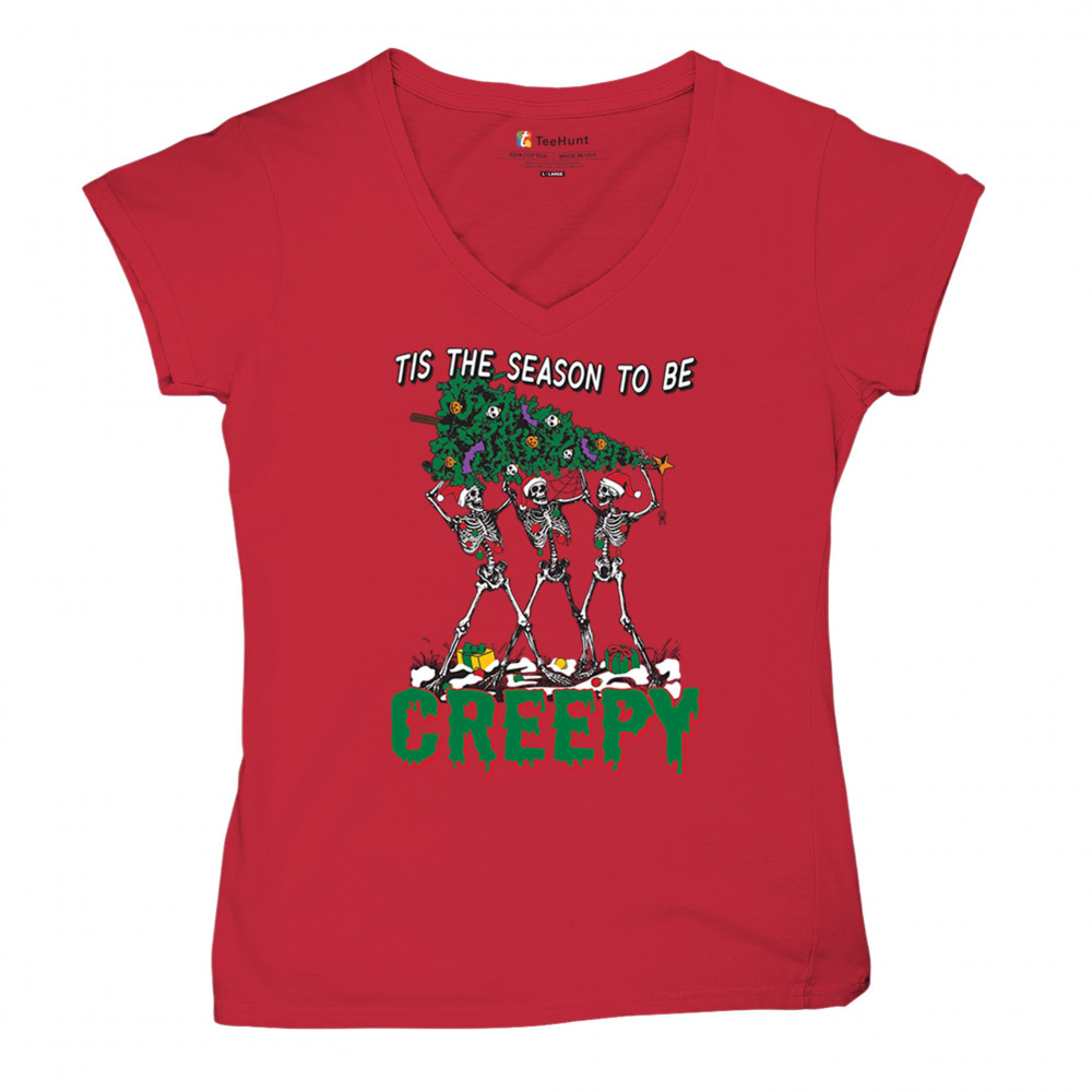 Spooky meets festive with "Tis the Season to Be Creepy" skeleton Christmas design. Perfect for holiday parties, Secret Santa, and unique gifts.