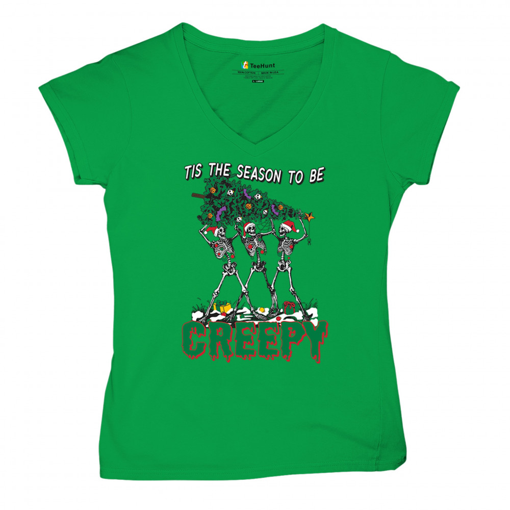 Spooky meets festive with "Tis the Season to Be Creepy" skeleton Christmas design. Perfect for holiday parties, Secret Santa, and unique gifts.
