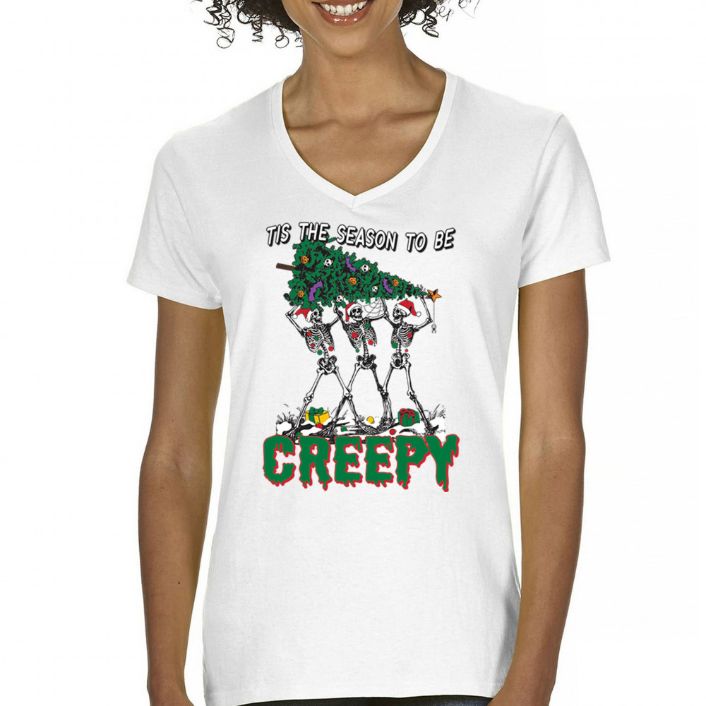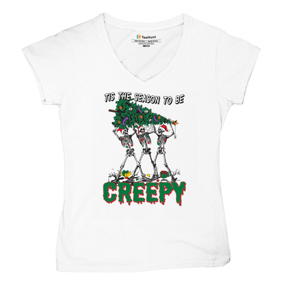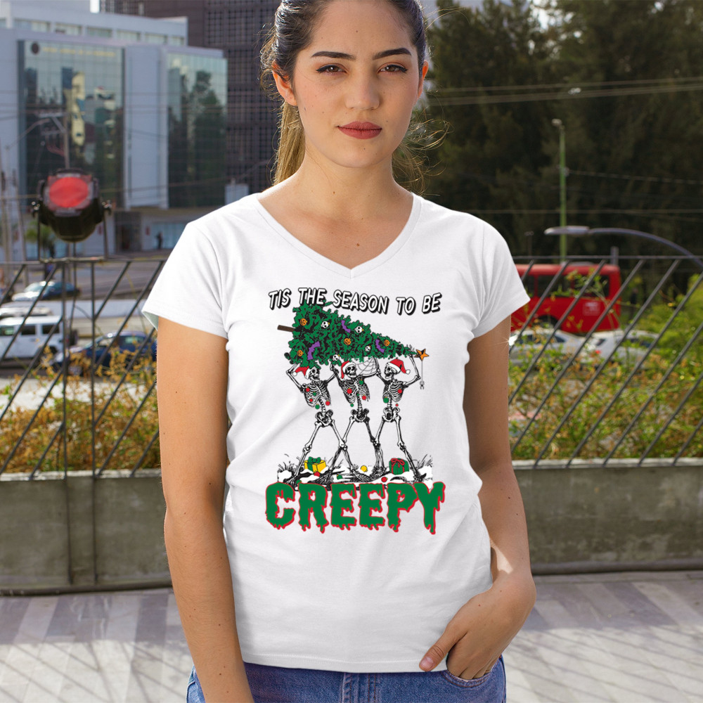 Spooky meets festive with "Tis the Season to Be Creepy" skeleton Christmas design. Perfect for holiday parties, Secret Santa, and unique gifts.