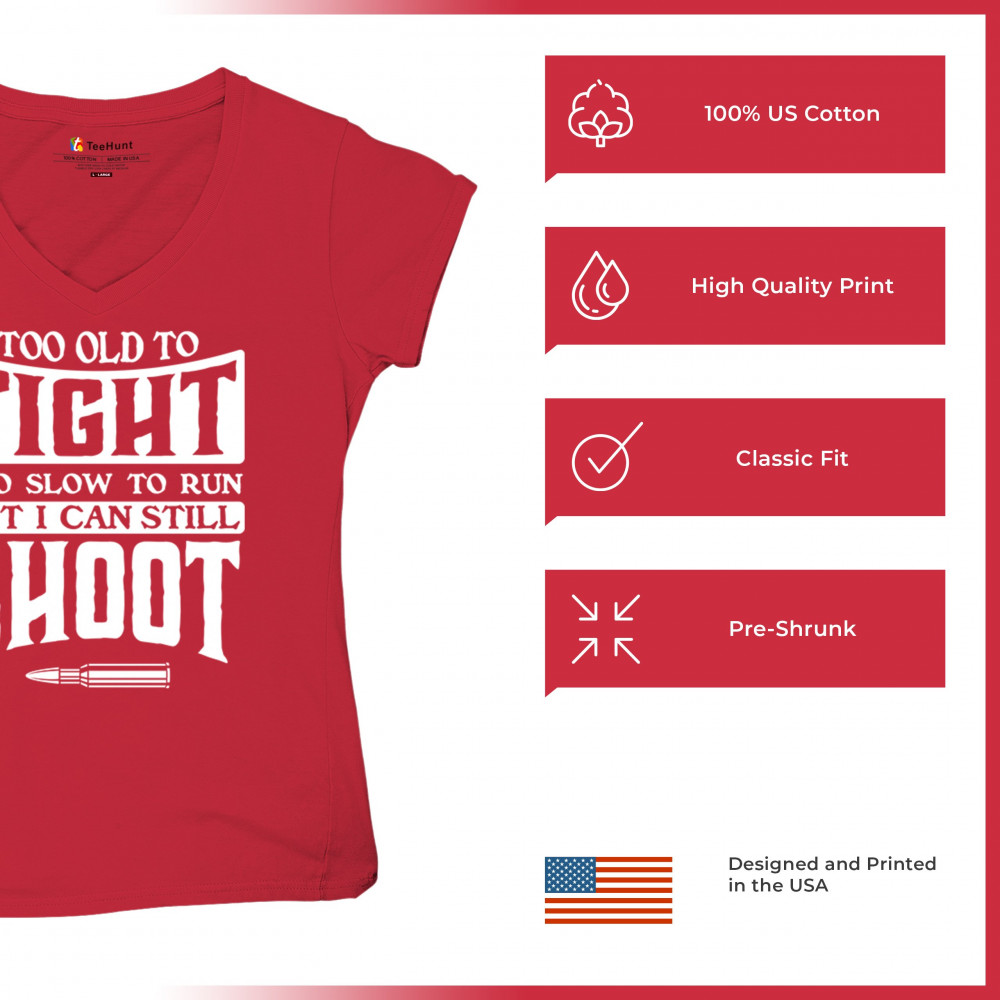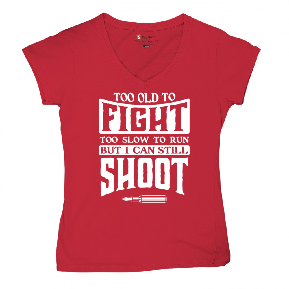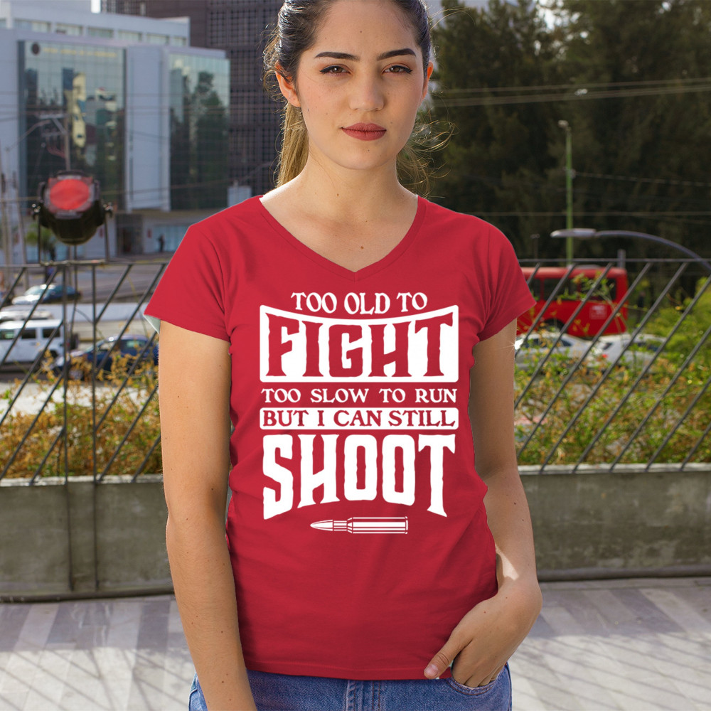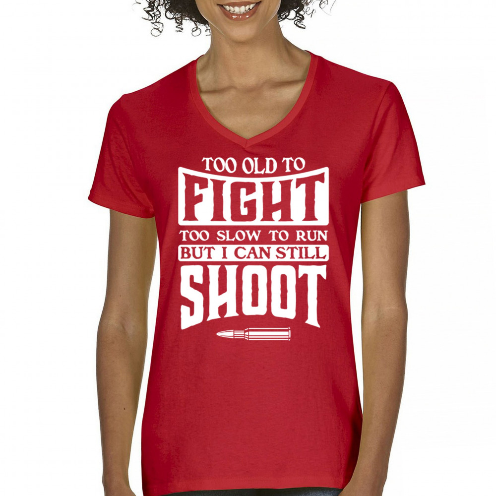 TOO SLOW TO RUN BUT CAN STILL SHOOT women's v-neck t-shirt 2nd amendment tee red