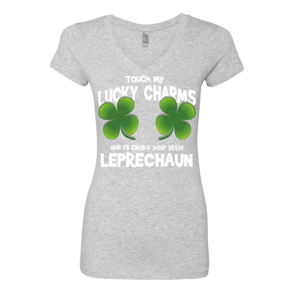 TOUCH MY LUCKY CHARMS women's v-neck t-shirt irish shamrock st. patrick's day gray