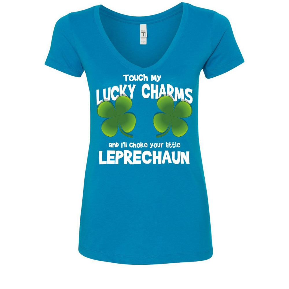 TOUCH MY LUCKY CHARMS women's v-neck t-shirt irish shamrock st. patrick's day turquoise