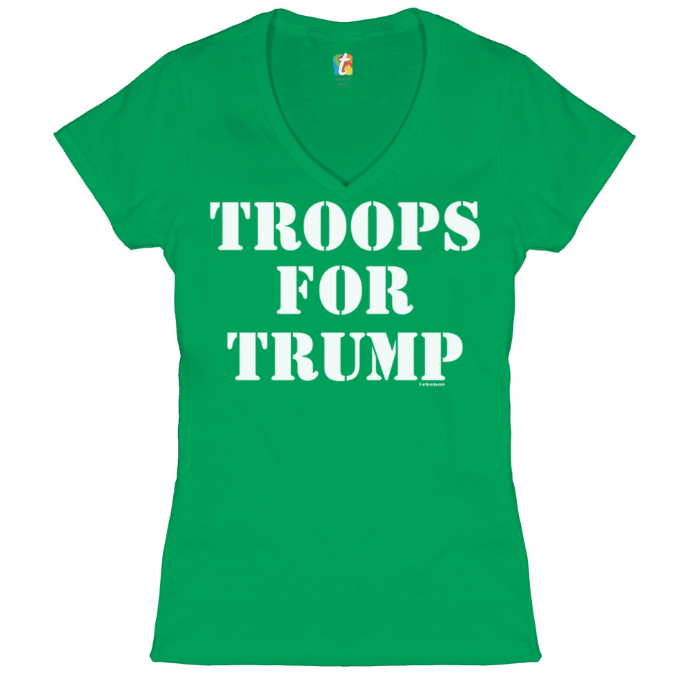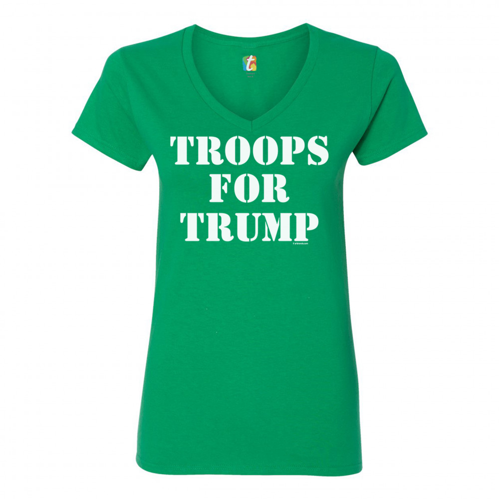 TROOPS FOR TRUMP women's v-neck t-shirt donald trump 2020 support our troops tee green