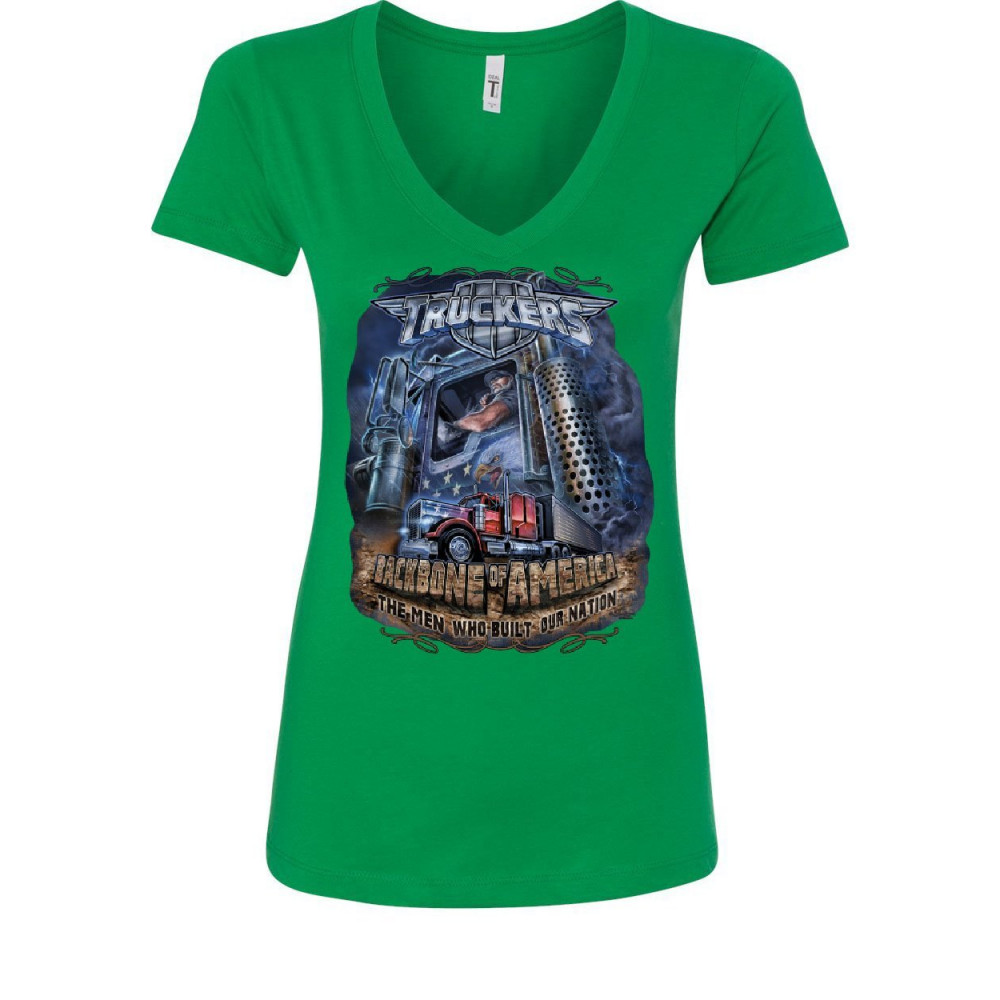TRUCKERS - BACKBONE OF AMERICA truckers backbone of america women's v-neck t-shirt truck driver hauler diesel green