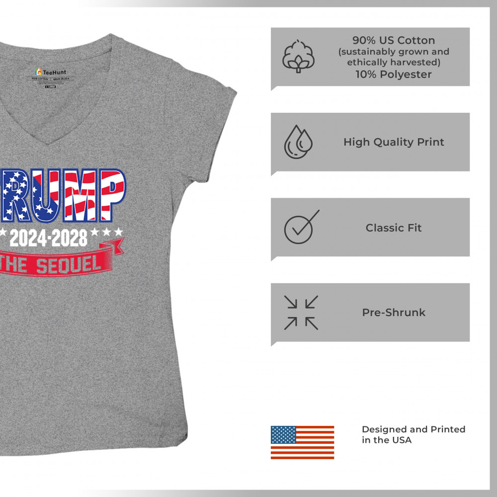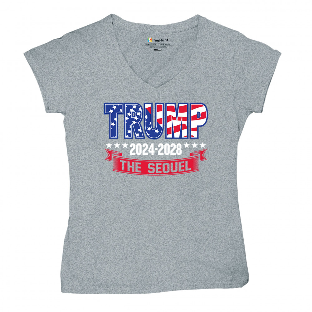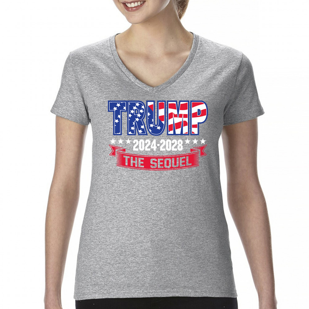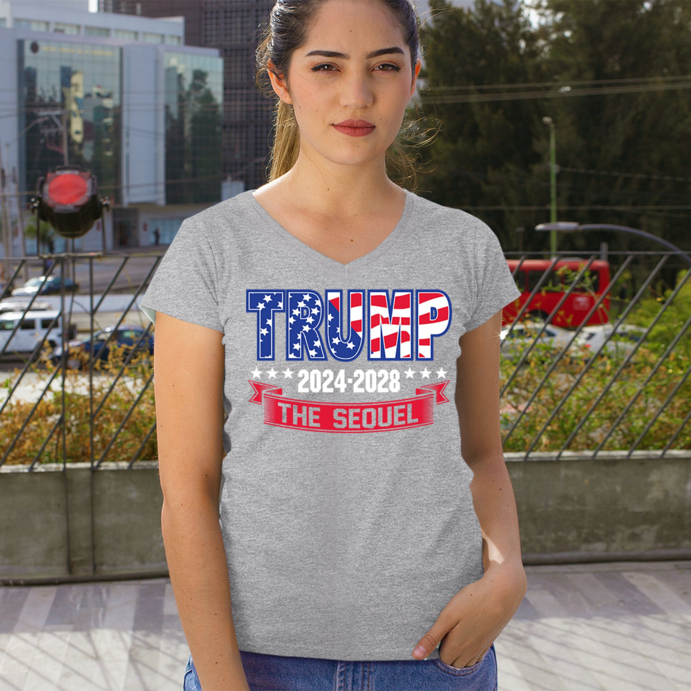 Stand with Trump for 2024-2028 in "The Sequel" design, celebrating America First, conservative values, and 4 more years of patriotic vision.