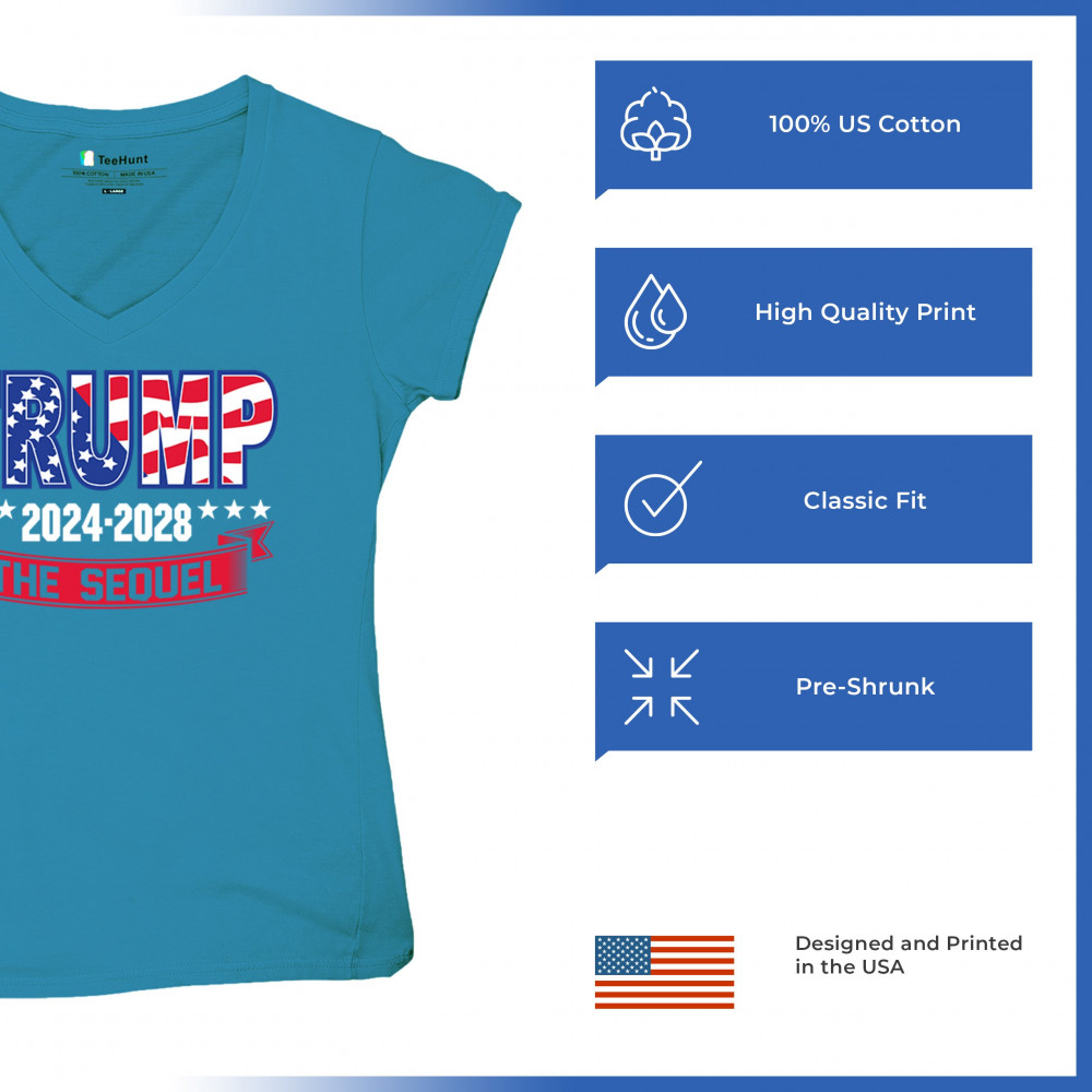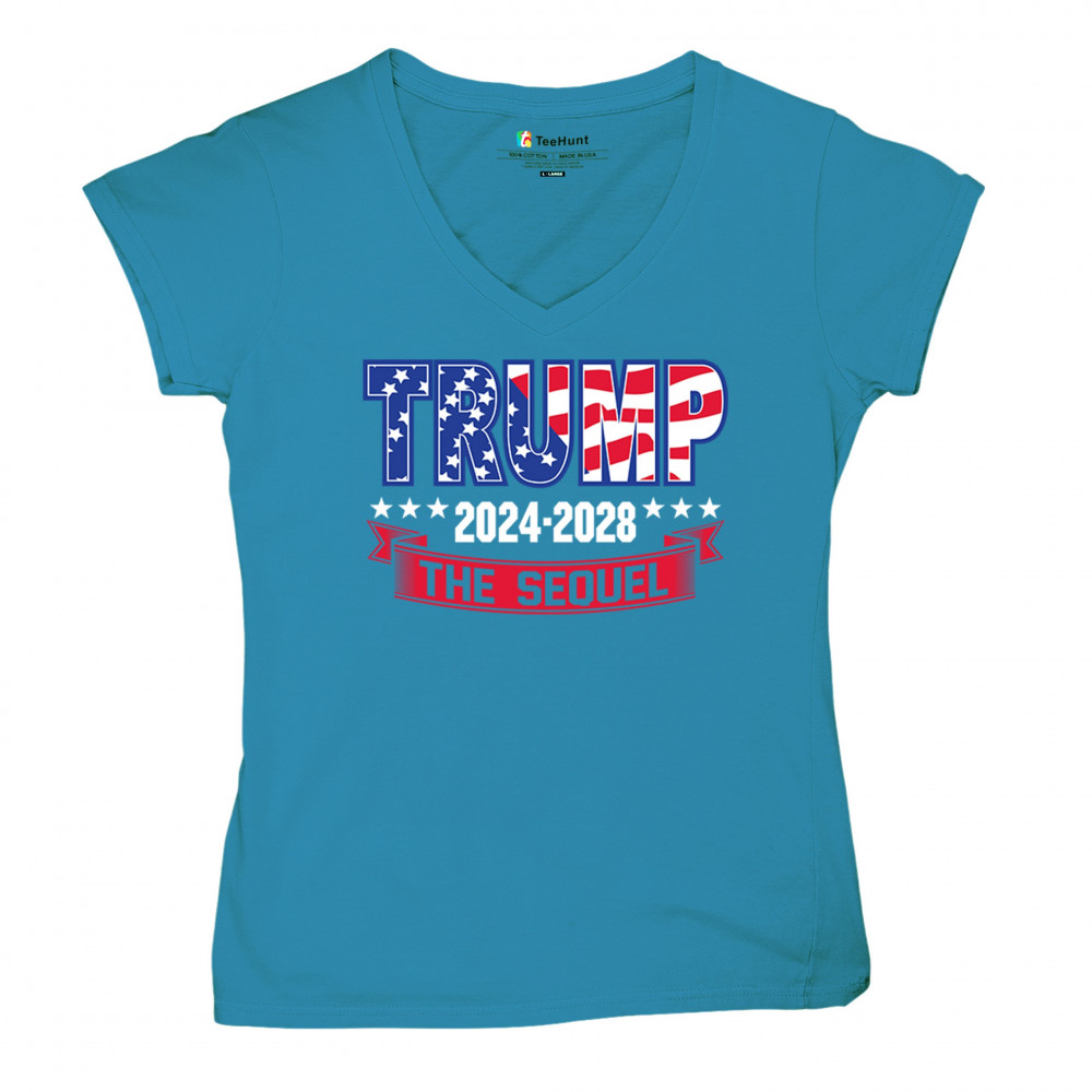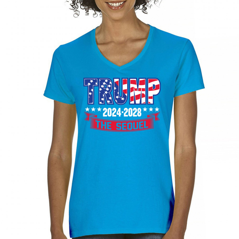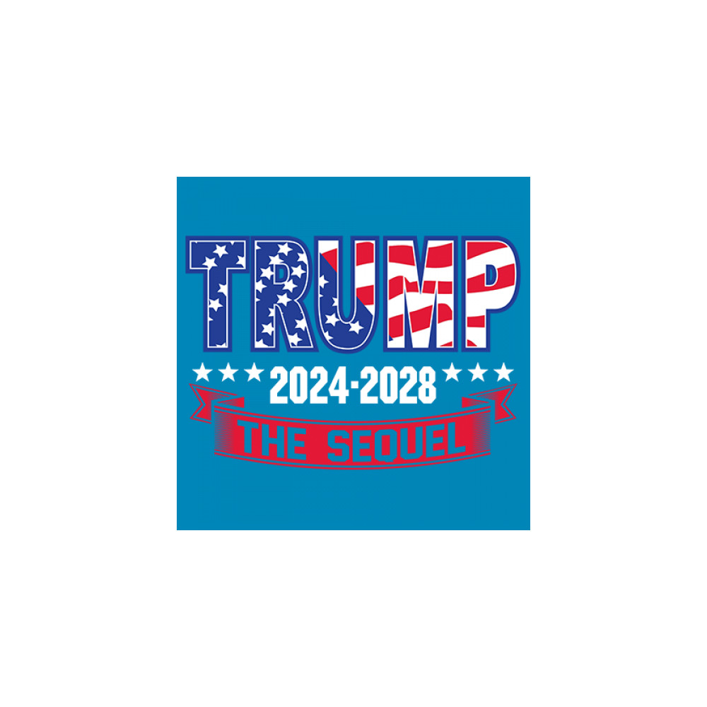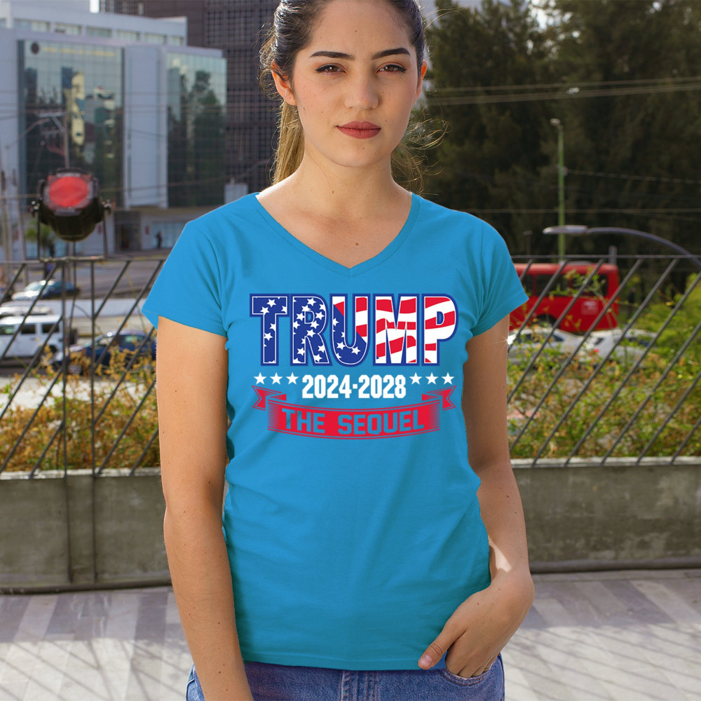 Stand with Trump for 2024-2028 in "The Sequel" design, celebrating America First, conservative values, and 4 more years of patriotic vision.