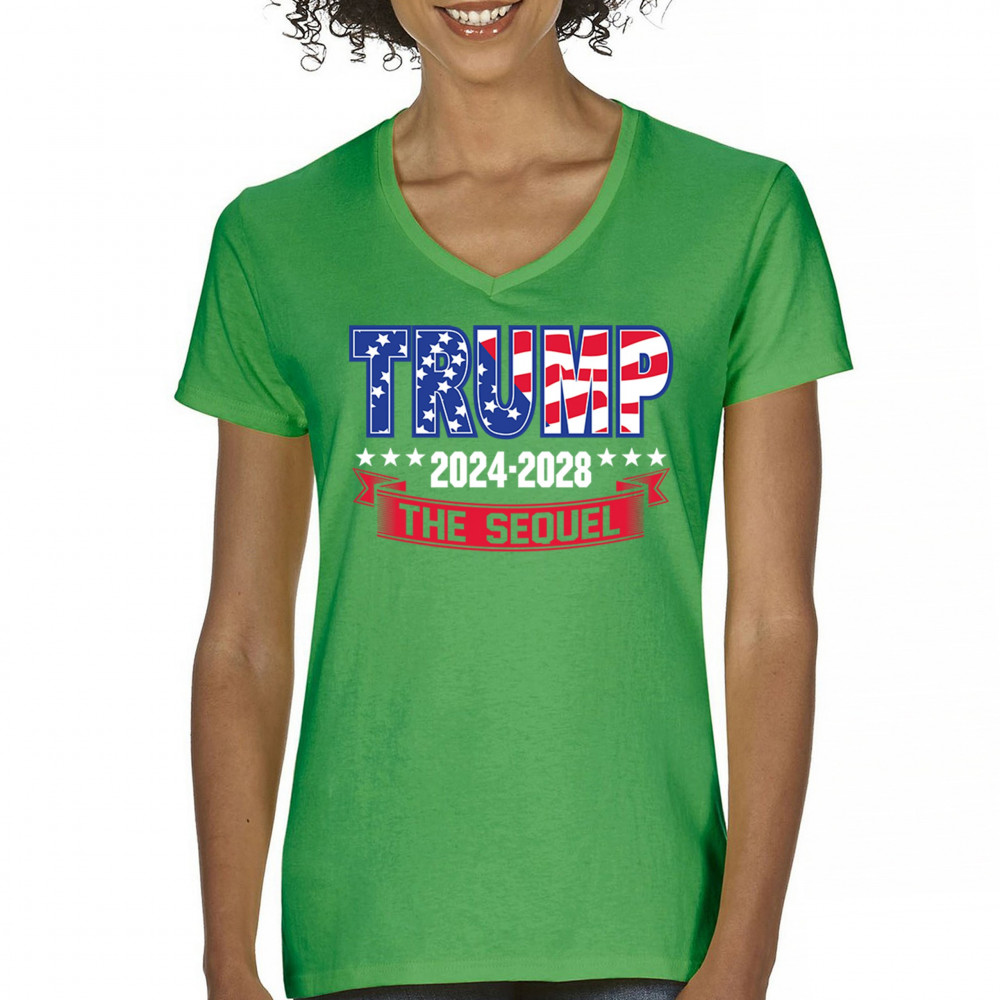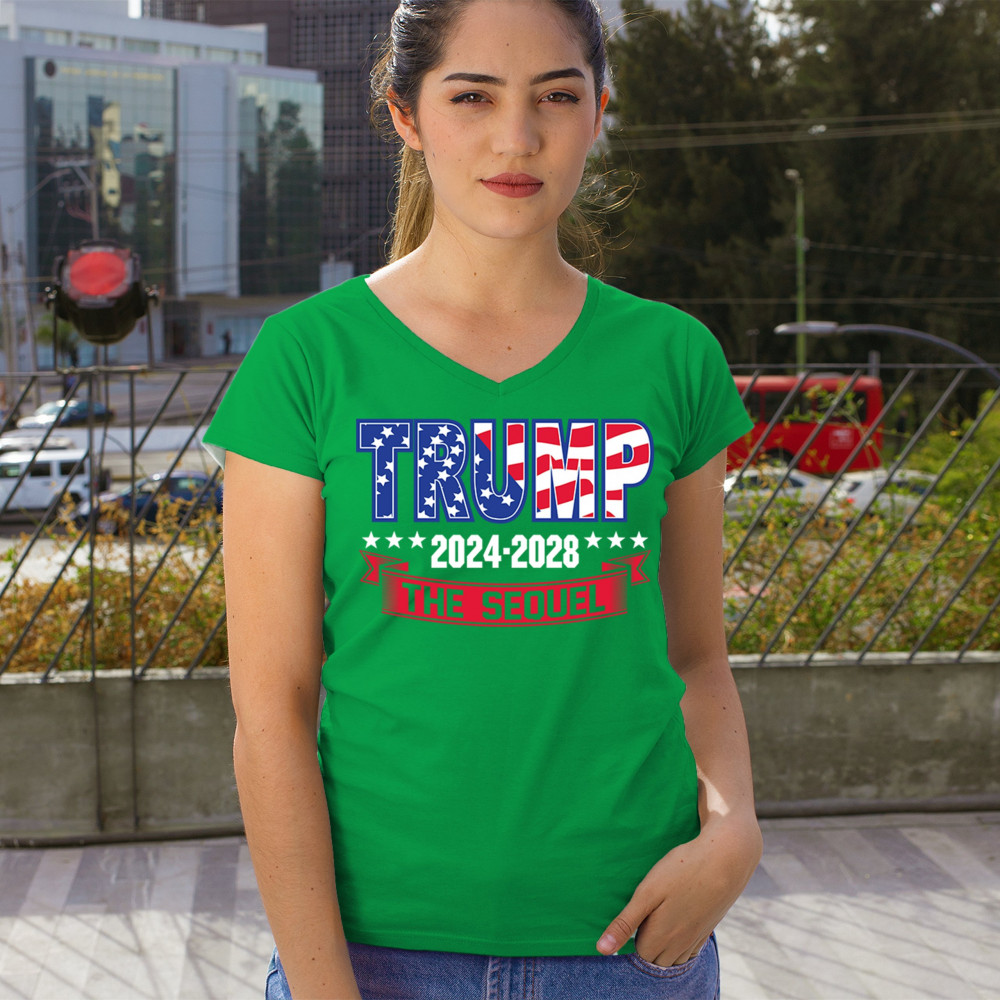 Stand with Trump for 2024-2028 in "The Sequel" design, celebrating America First, conservative values, and 4 more years of patriotic vision.