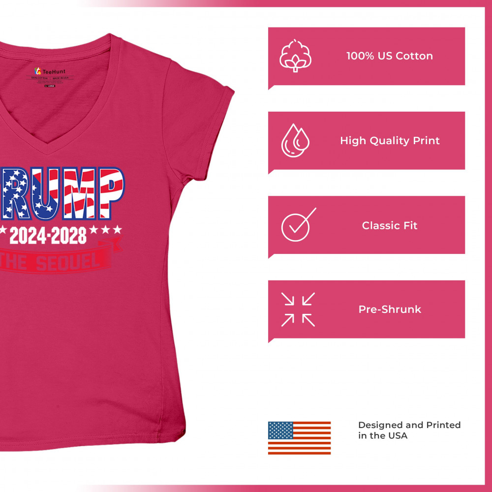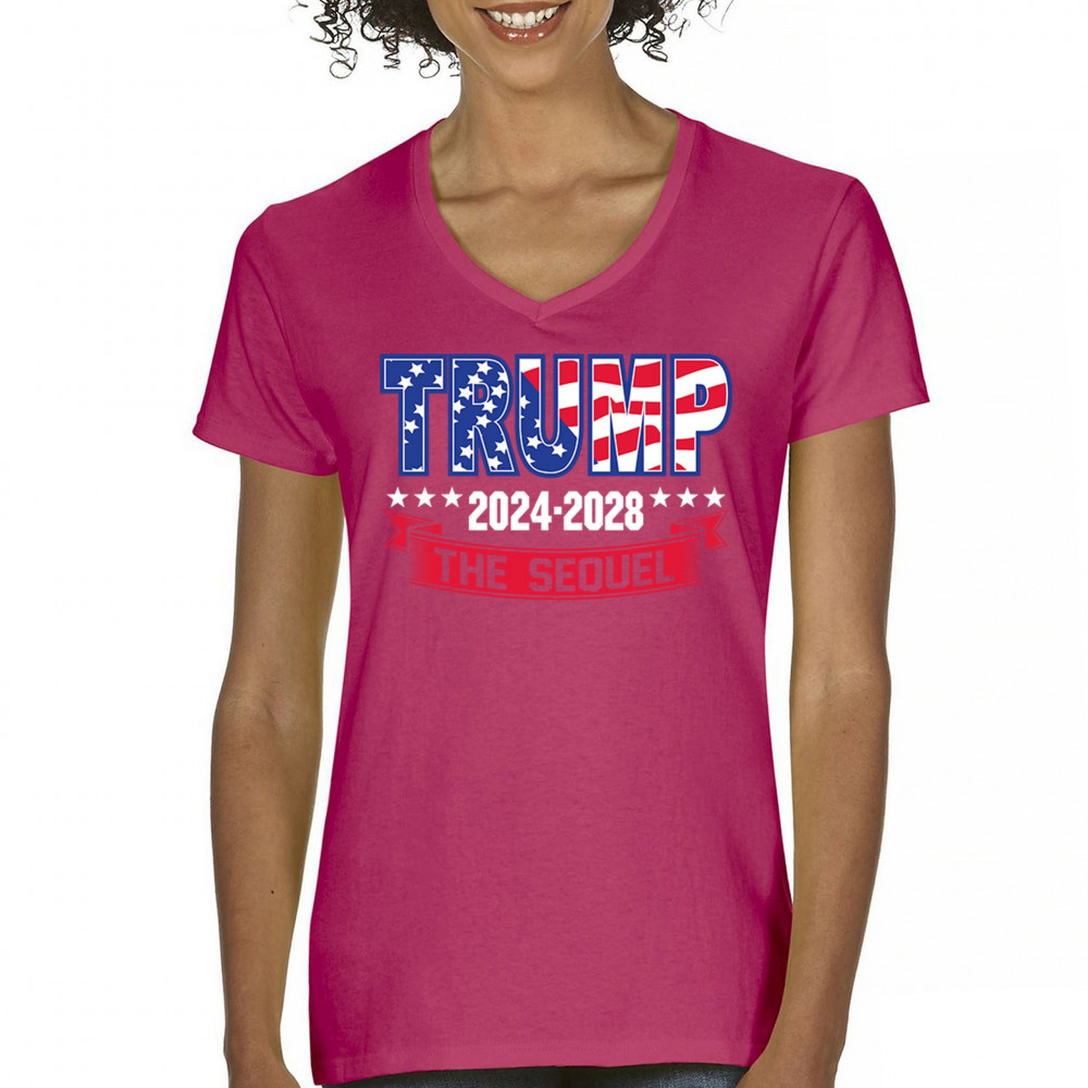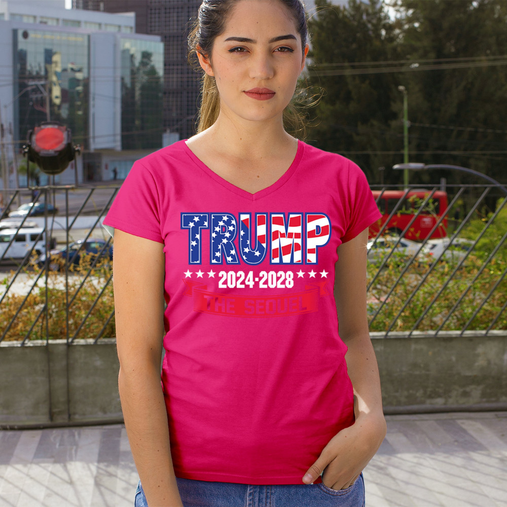 Stand with Trump for 2024-2028 in "The Sequel" design, celebrating America First, conservative values, and 4 more years of patriotic vision.