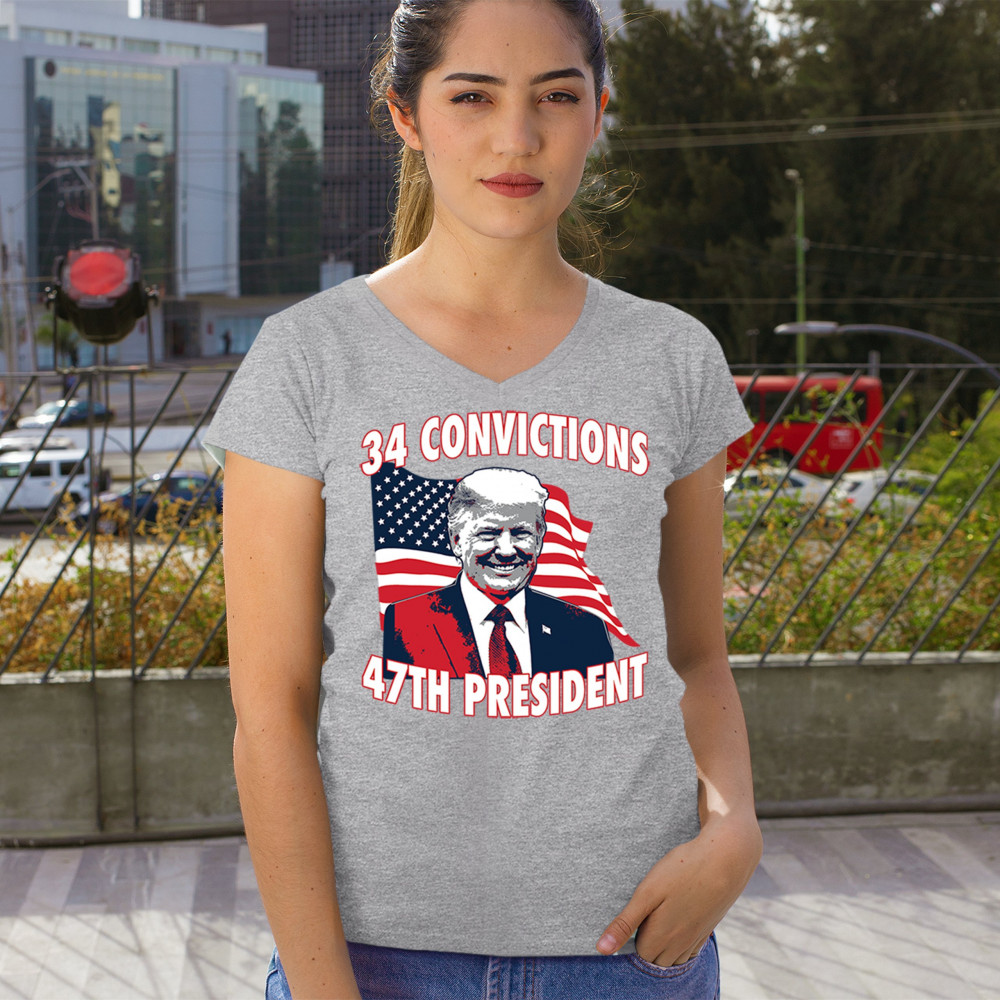 Show your support for Trump's 2024 campaign with the "34 Convictions, 47th President" design. Perfect for rallies, patriotic events, and conservative gatherings.