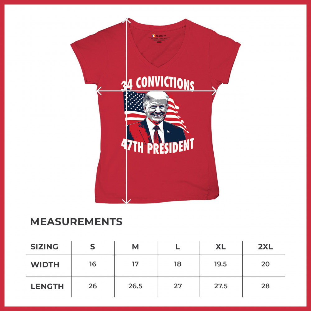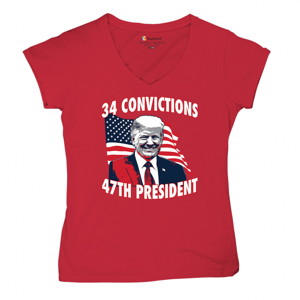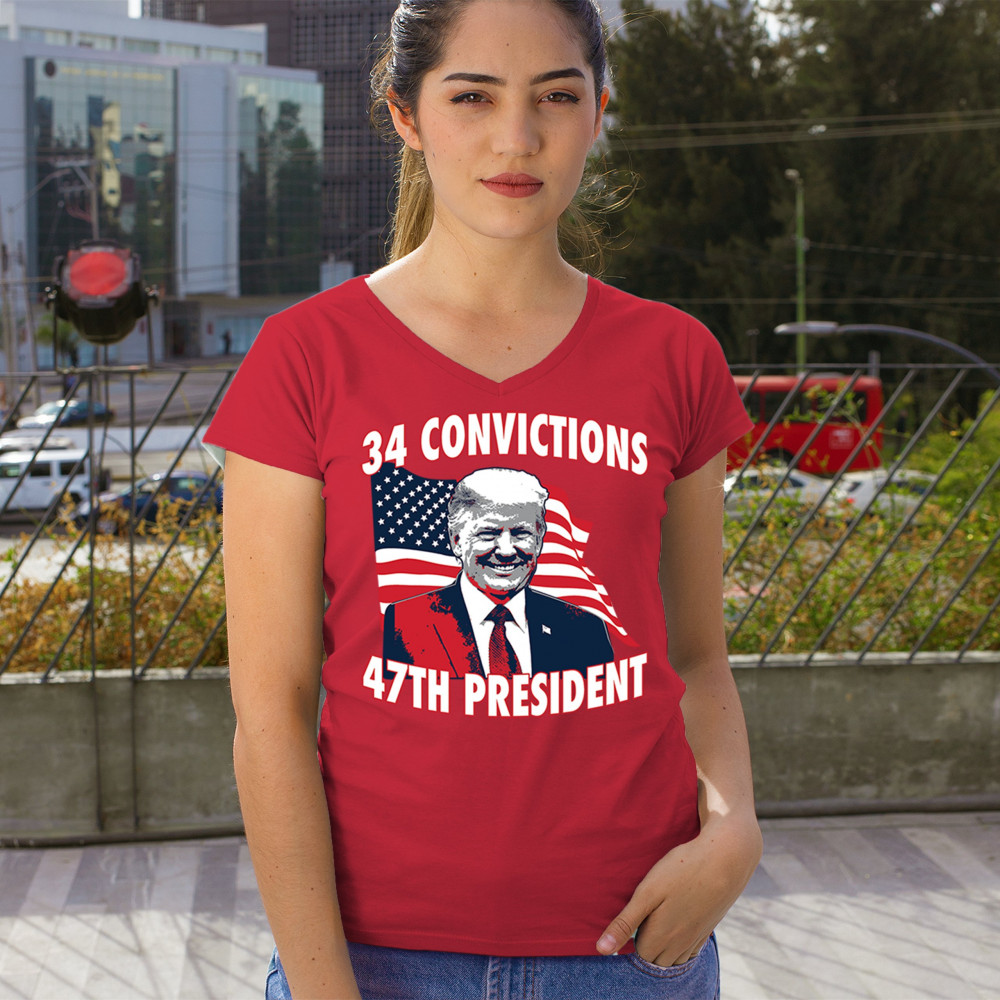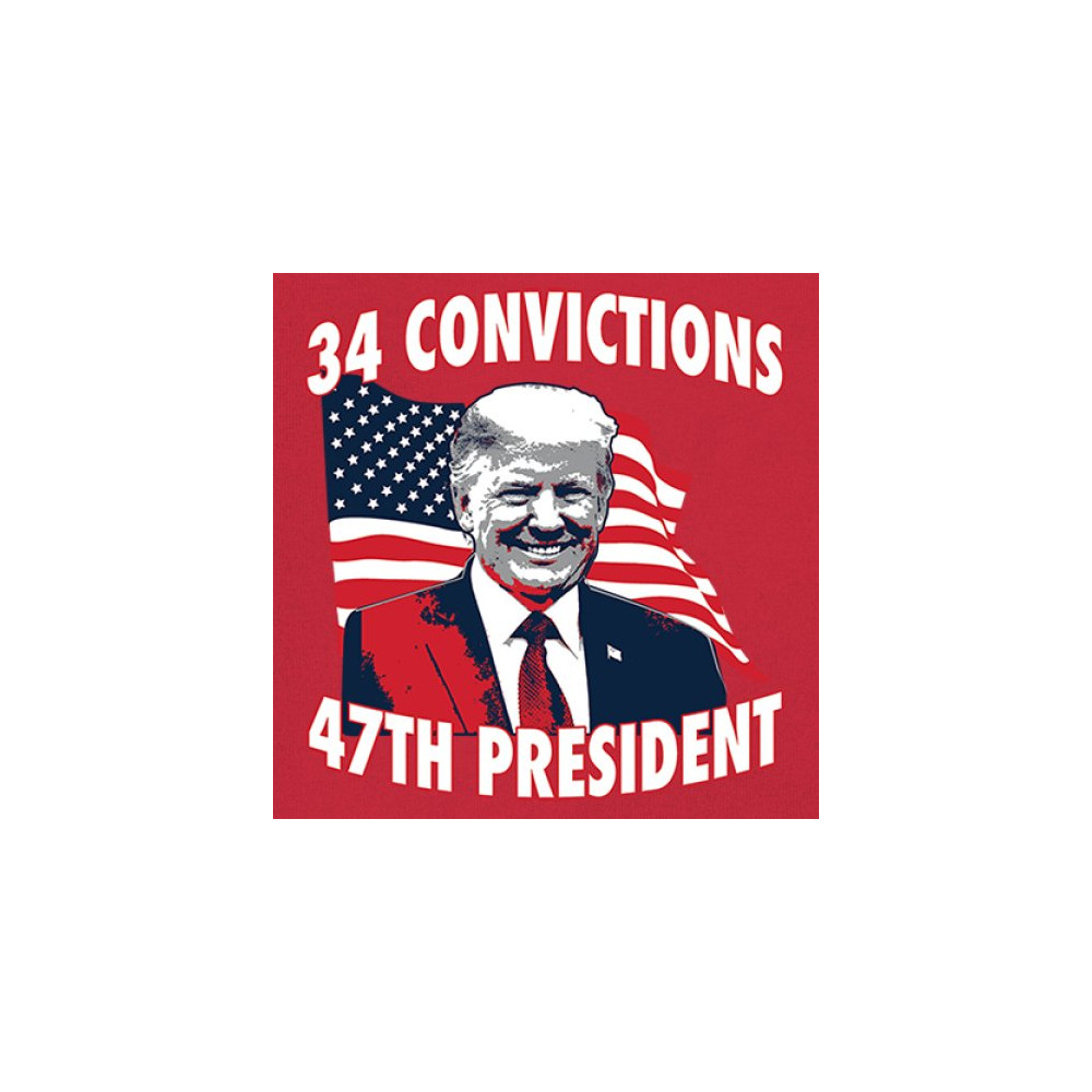 Show your support for Trump's 2024 campaign with the "34 Convictions, 47th President" design. Perfect for rallies, patriotic events, and conservative gatherings.
