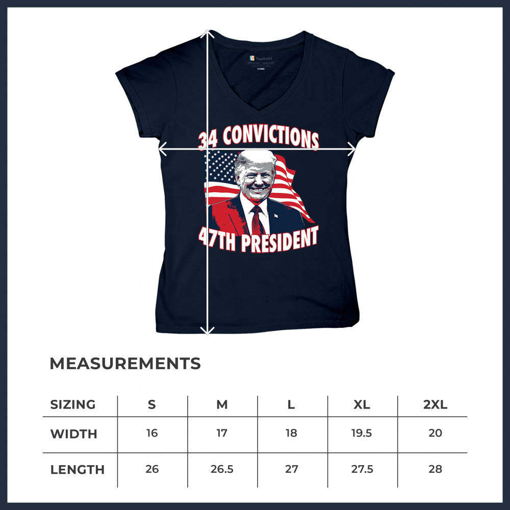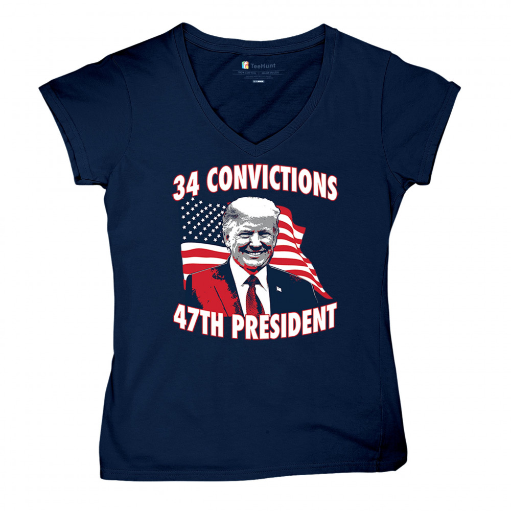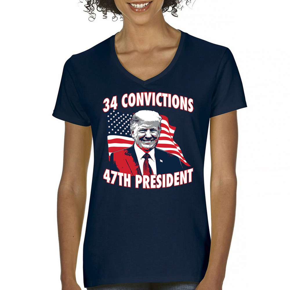 Show your support for Trump's 2024 campaign with the "34 Convictions, 47th President" design. Perfect for rallies, patriotic events, and conservative gatherings.