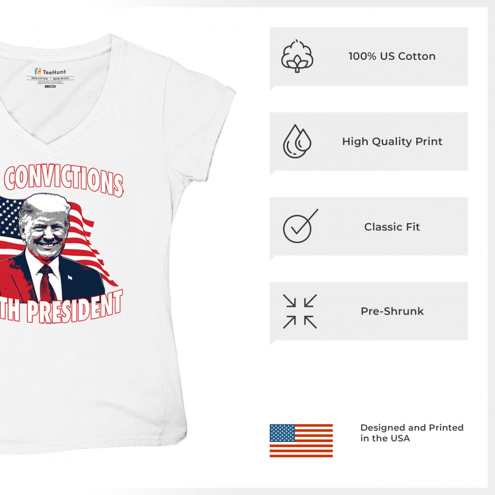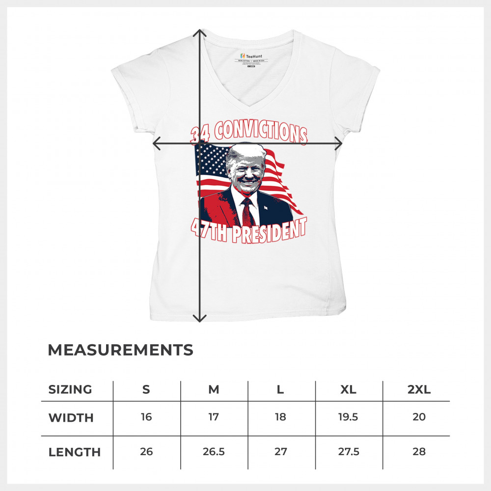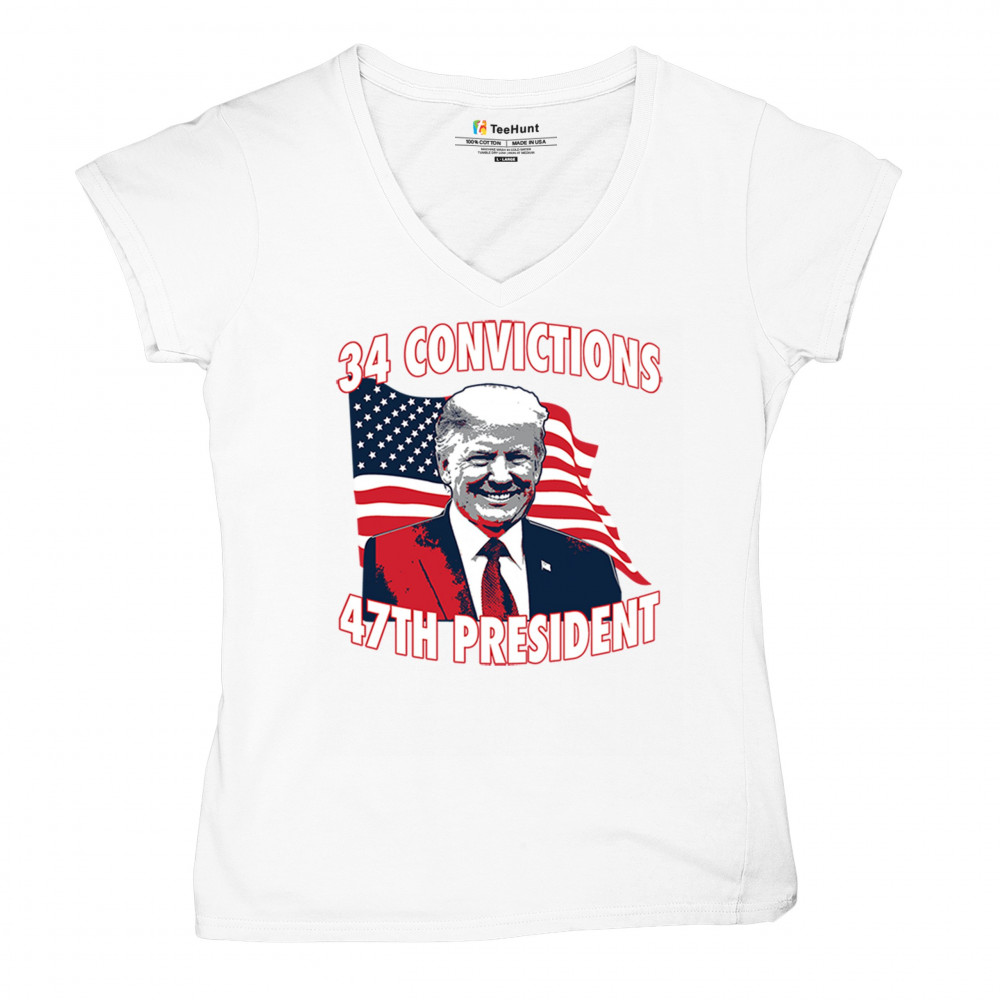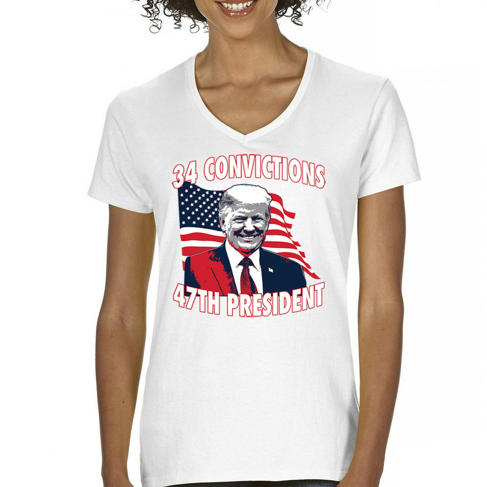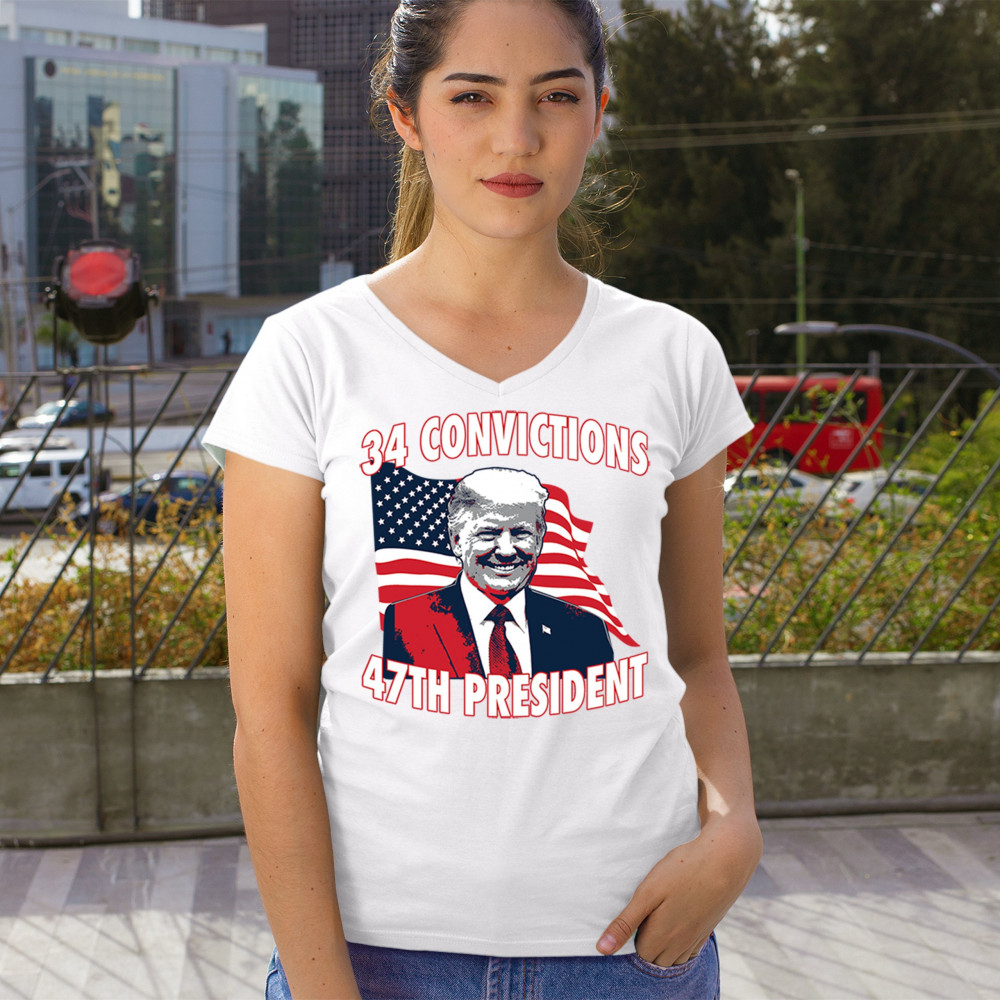 Show your support for Trump's 2024 campaign with the "34 Convictions, 47th President" design. Perfect for rallies, patriotic events, and conservative gatherings.