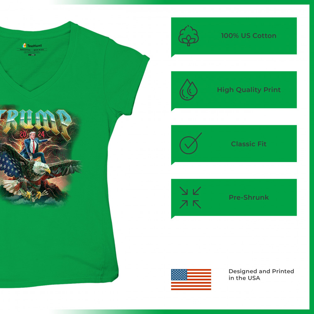 Stand out with our "Trump 2024" design featuring Trump riding an eagle. Perfect for rallies and patriotic events. Show your support with pride and confidence.