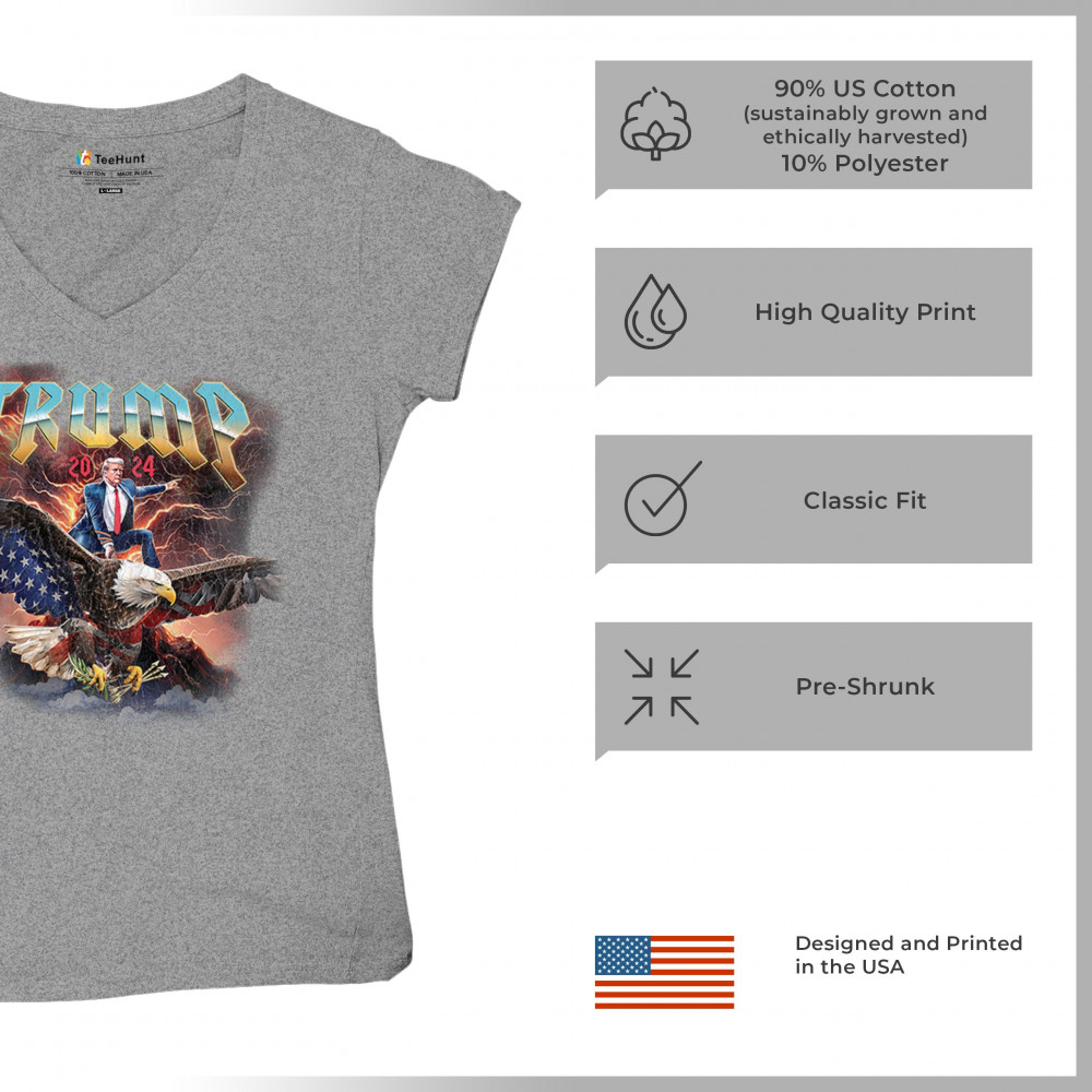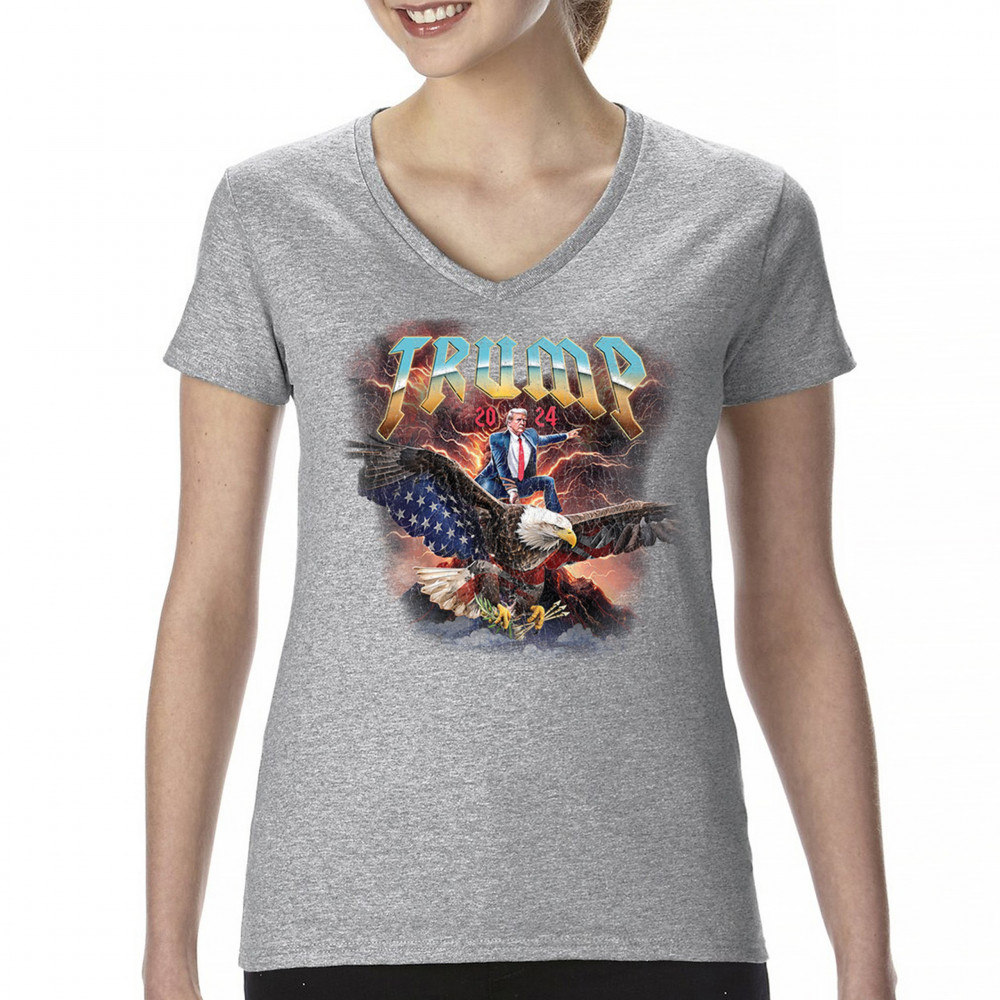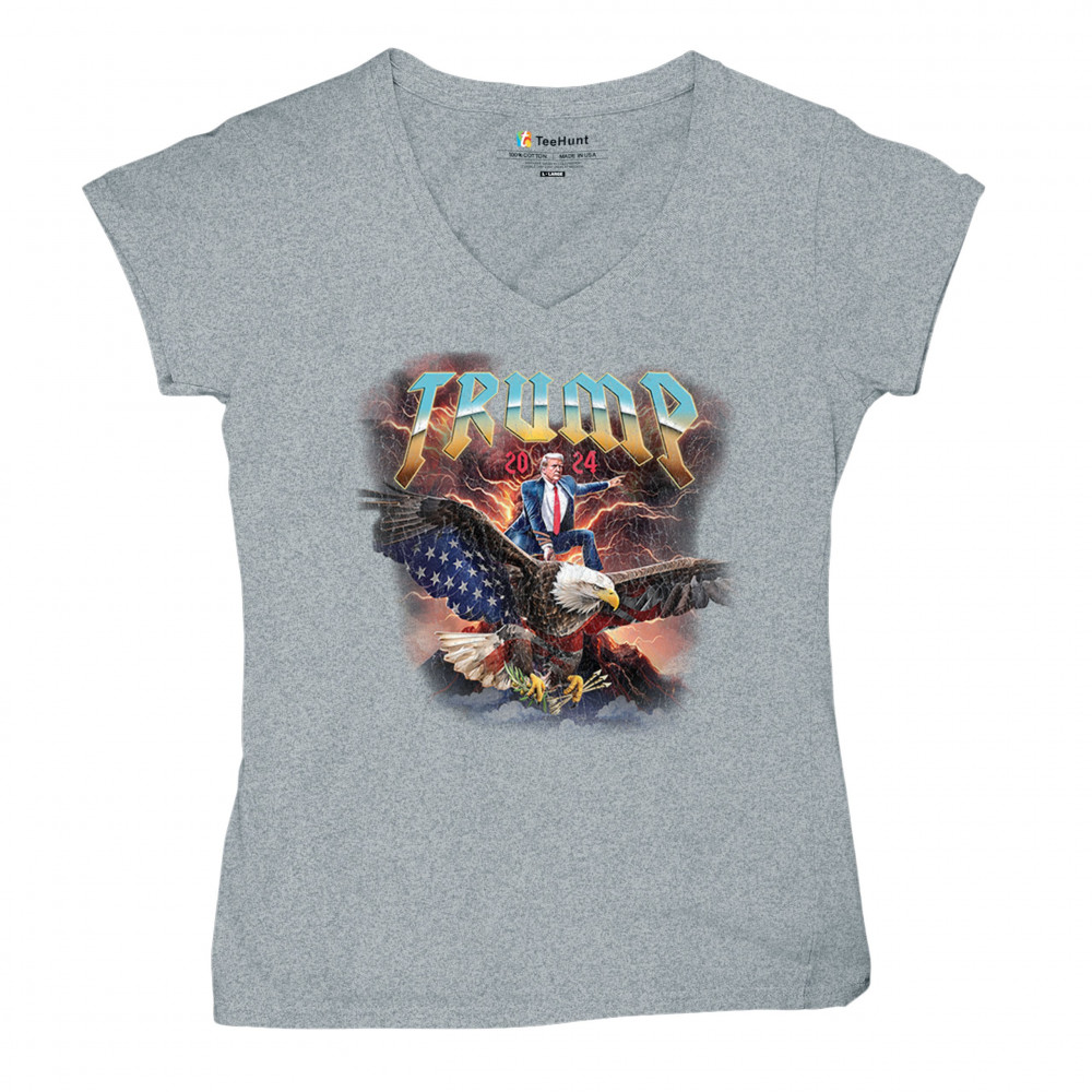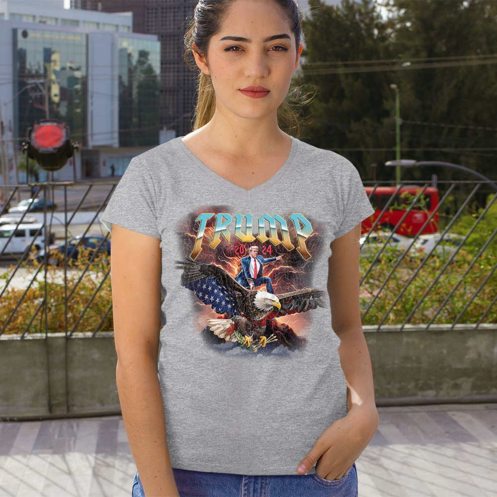 Stand out with our "Trump 2024" design featuring Trump riding an eagle. Perfect for rallies and patriotic events. Show your support with pride and confidence.