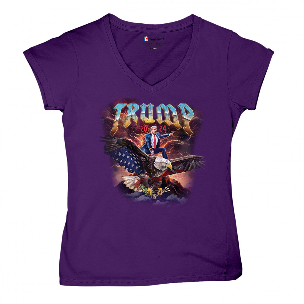Stand out with our "Trump 2024" design featuring Trump riding an eagle. Perfect for rallies and patriotic events. Show your support with pride and confidence.