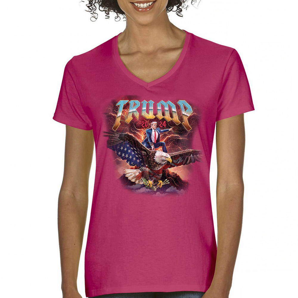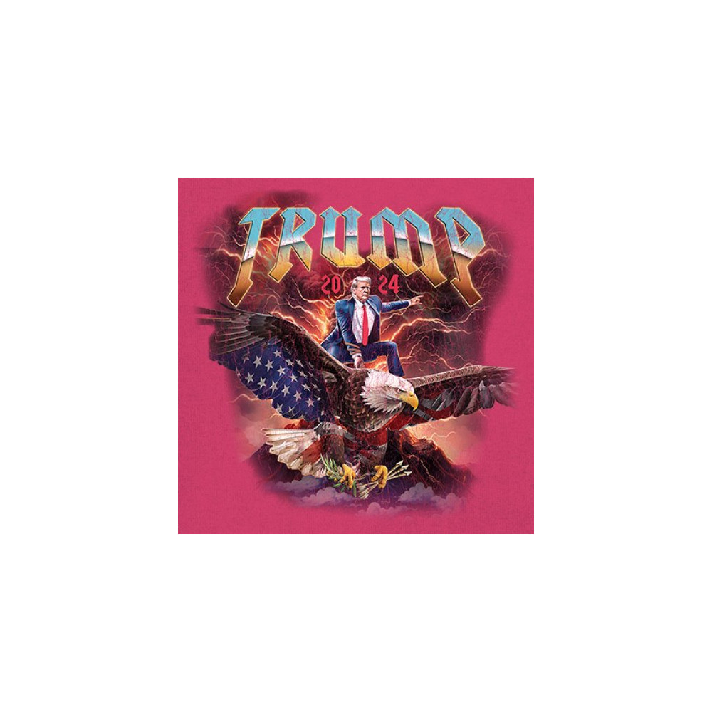Stand out with our "Trump 2024" design featuring Trump riding an eagle. Perfect for rallies and patriotic events. Show your support with pride and confidence.