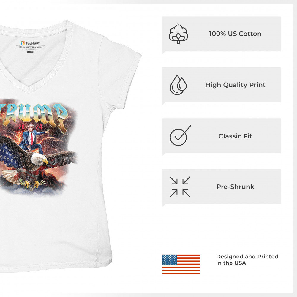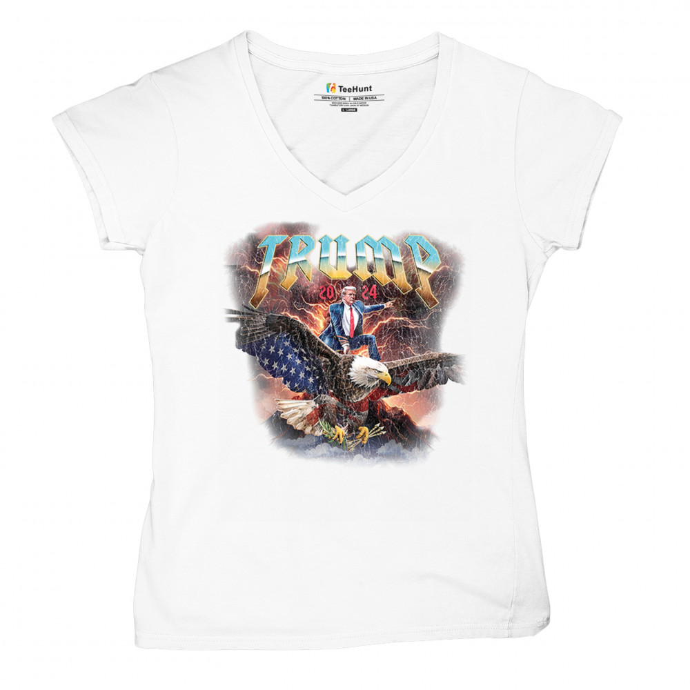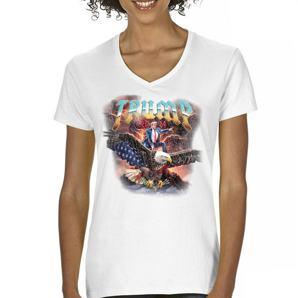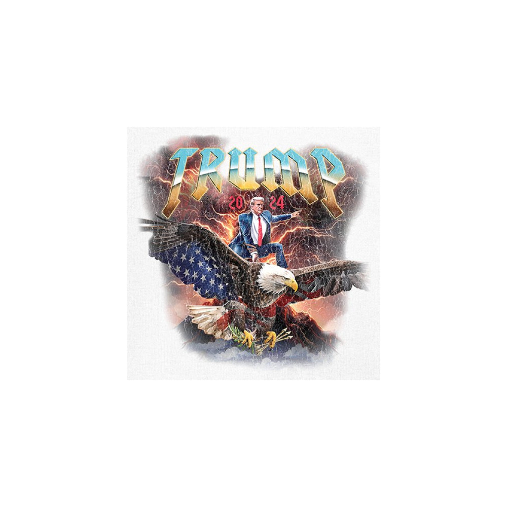 Stand out with our "Trump 2024" design featuring Trump riding an eagle. Perfect for rallies and patriotic events. Show your support with pride and confidence.