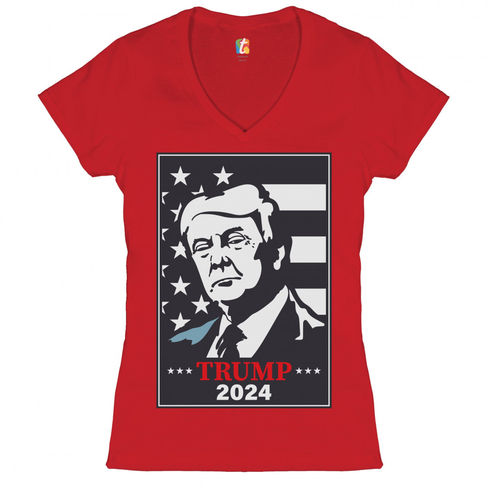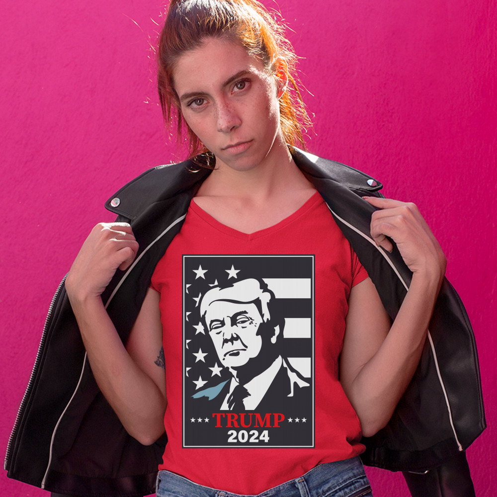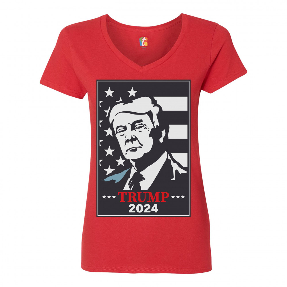 TRUMP 2024 women's v-neck t-shirt keep america great re-elect donald trump tee red