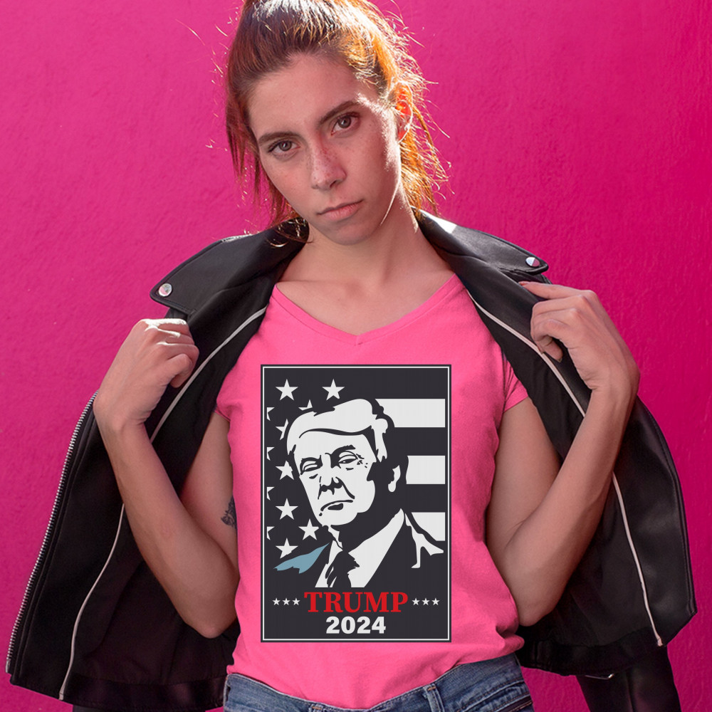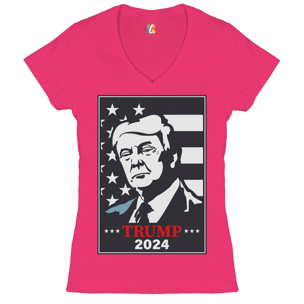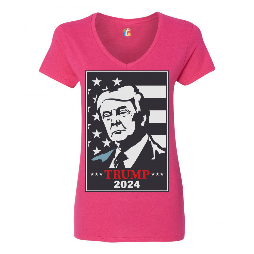TRUMP 2024 women's v-neck t-shirt keep america great re-elect donald trump tee pink