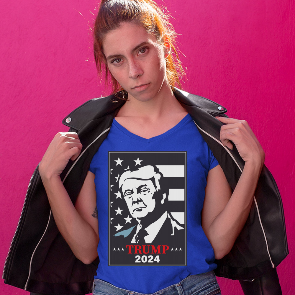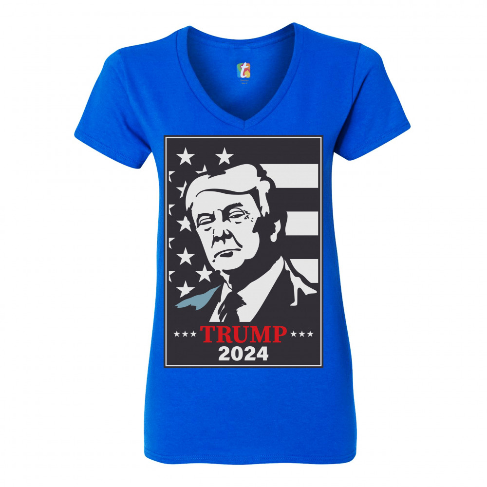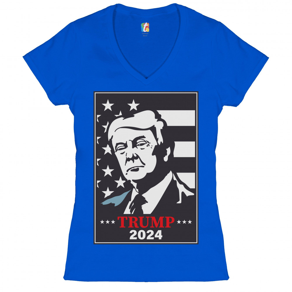 TRUMP 2024 women's v-neck t-shirt keep america great re-elect donald trump tee royal blue