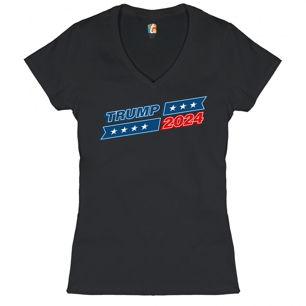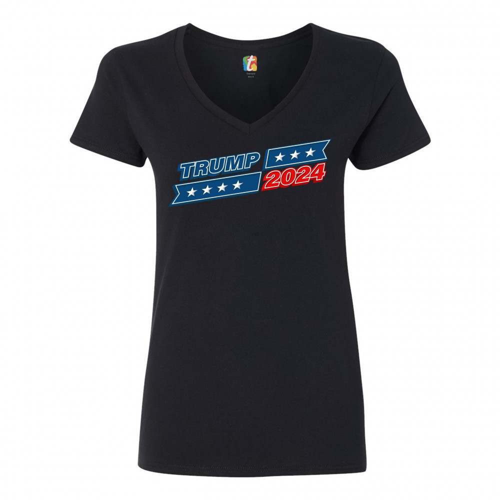 TRUMP 2024 women's v-neck t-shirt re-elect donald trump keep america great tee black