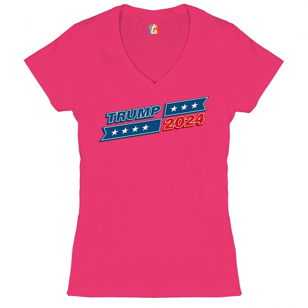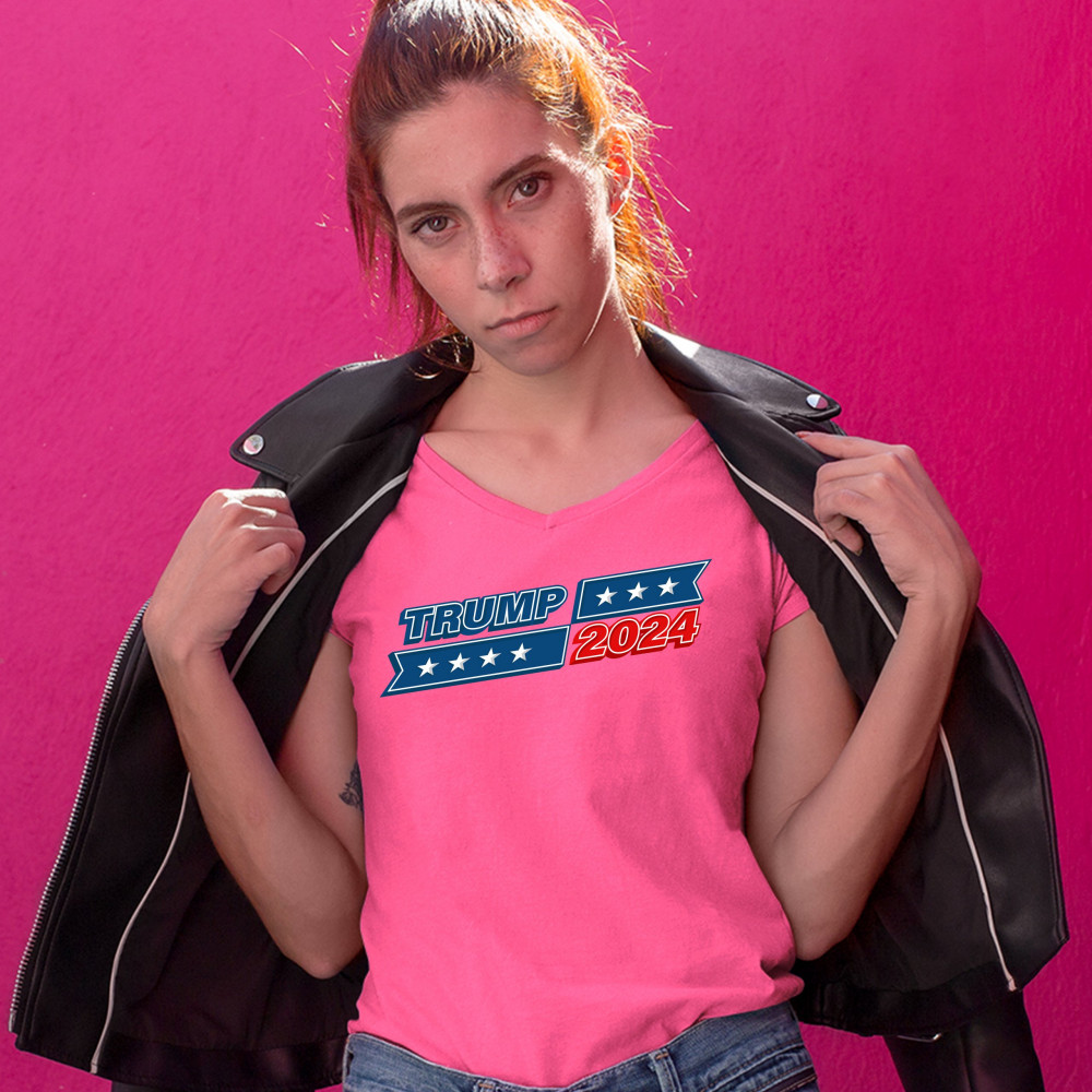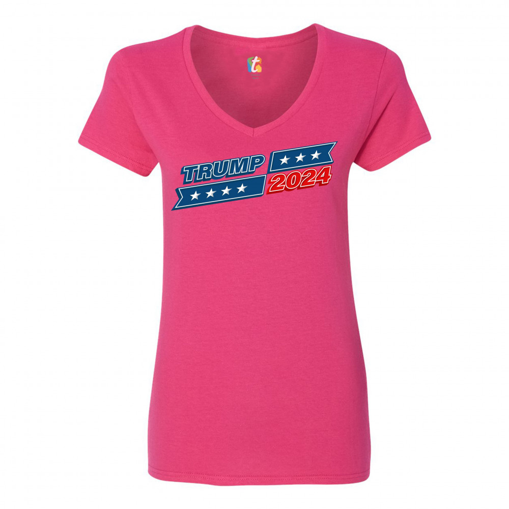 TRUMP 2024 women's v-neck t-shirt re-elect donald trump keep america great tee pink