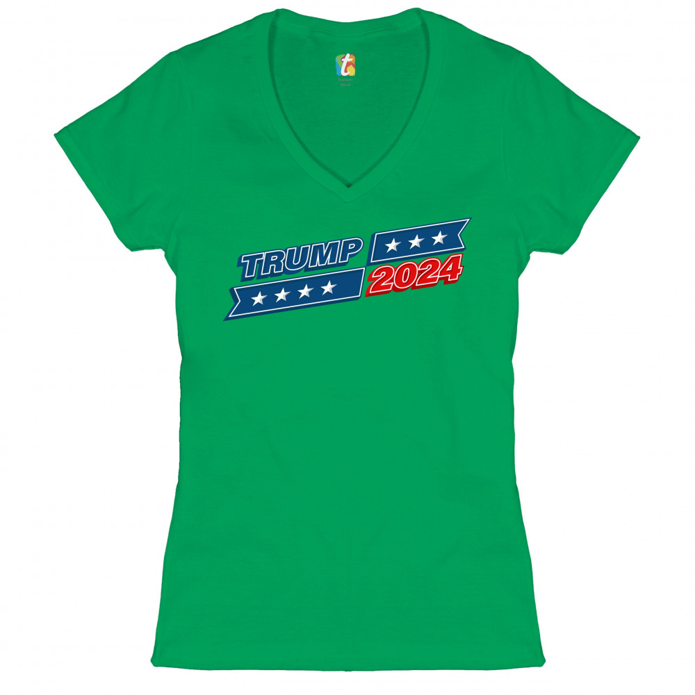 TRUMP 2024 women's v-neck t-shirt re-elect donald trump keep america great tee green