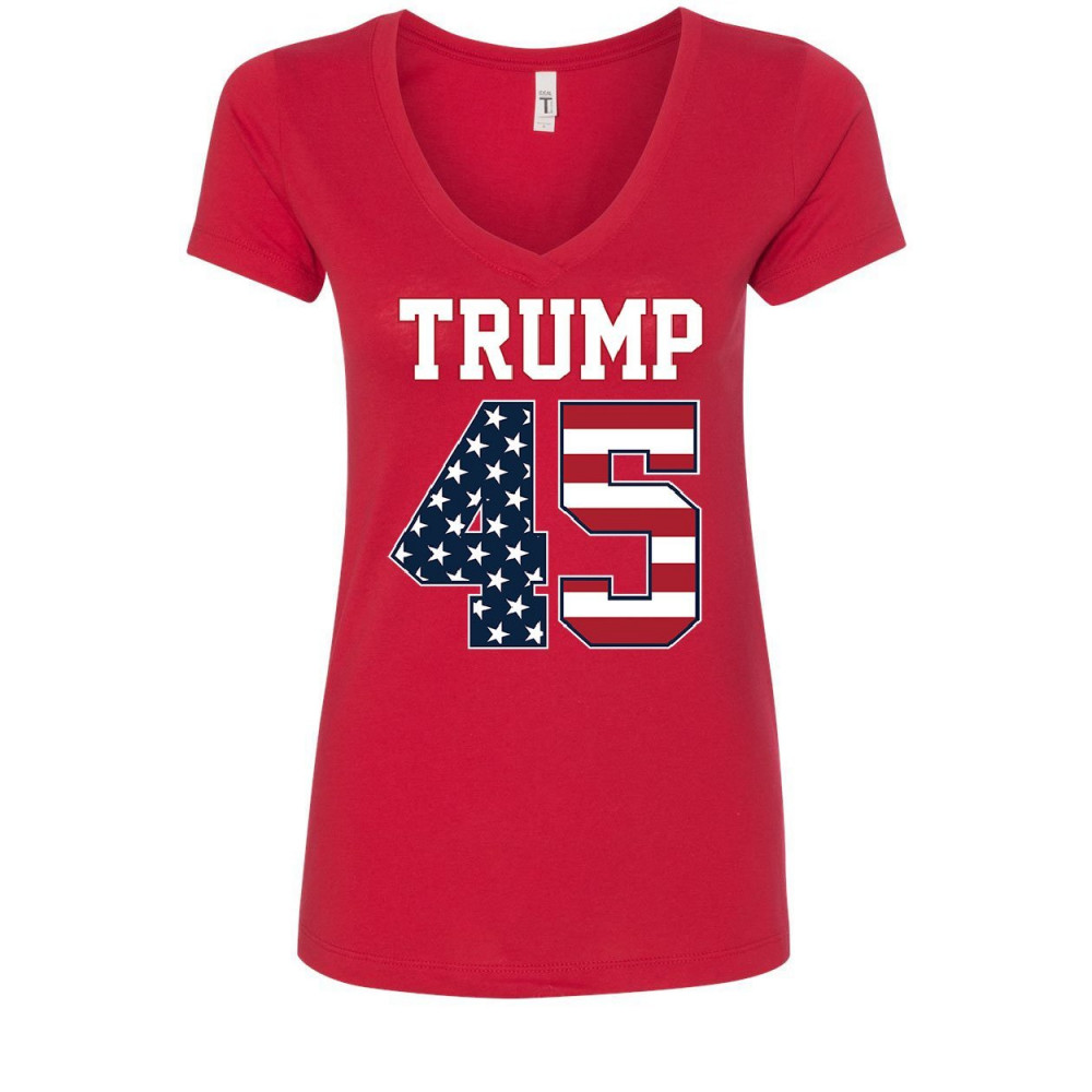 TRUMP 45 women's v-neck t-shirt the 45th president political stars and stripes red