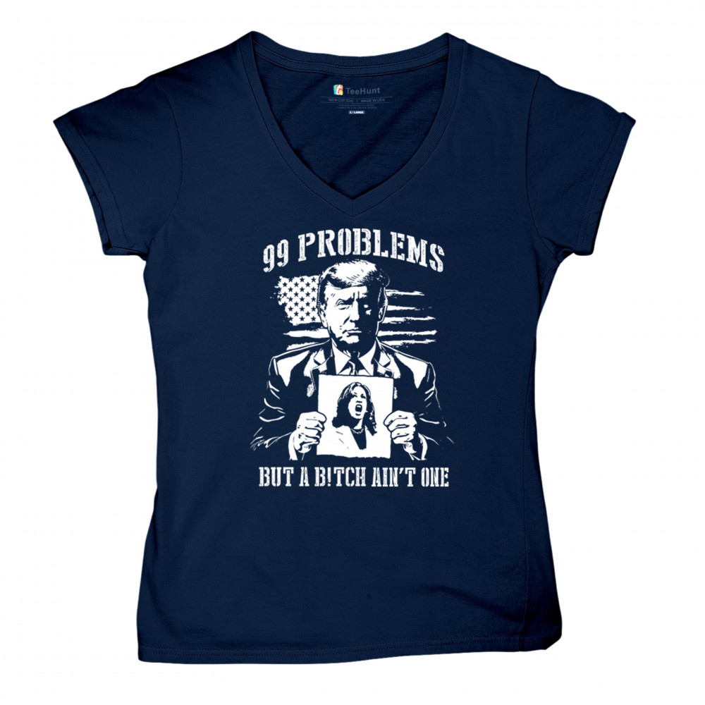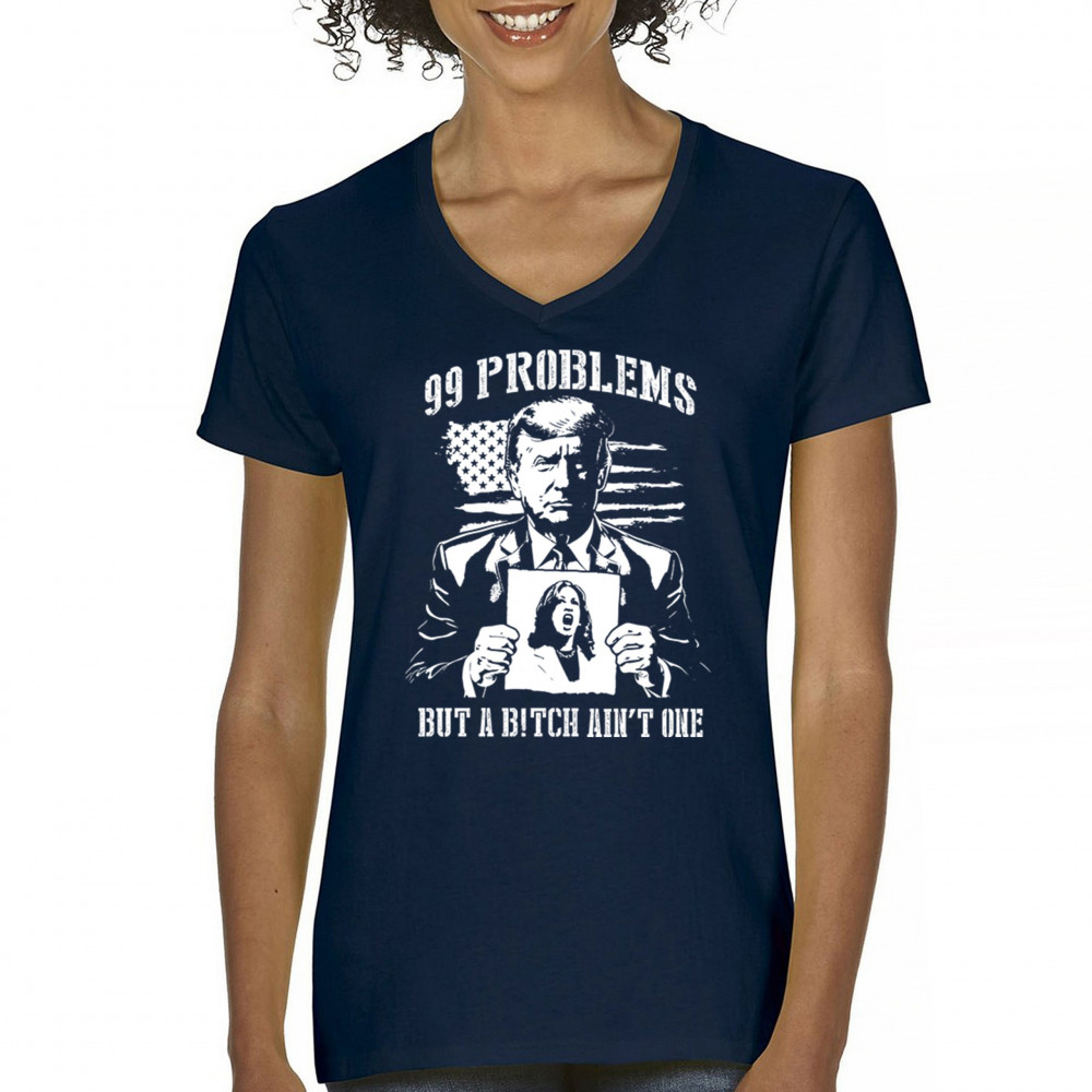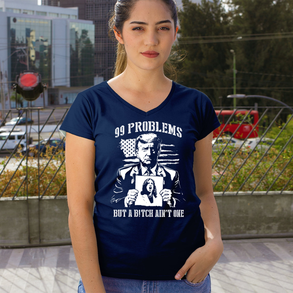 Bold conservative "99 Problems But a B*tch Ain’t One" design featuring Donald J. Trump and an American flag. Perfect for proud Republicans and patriots.