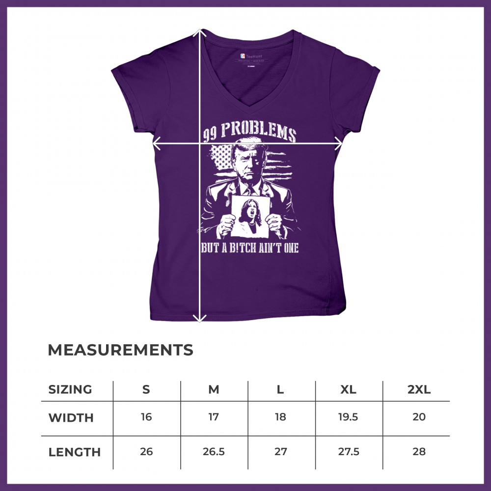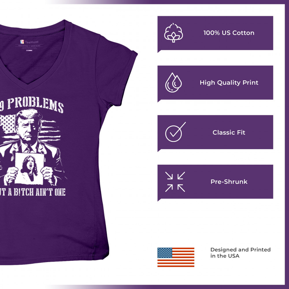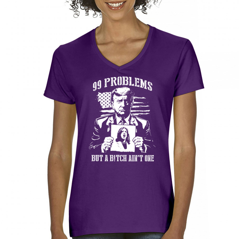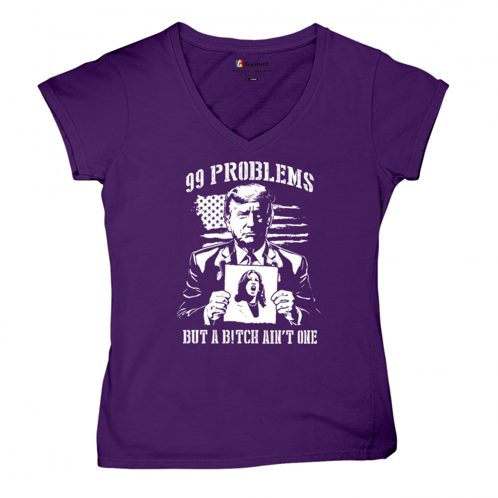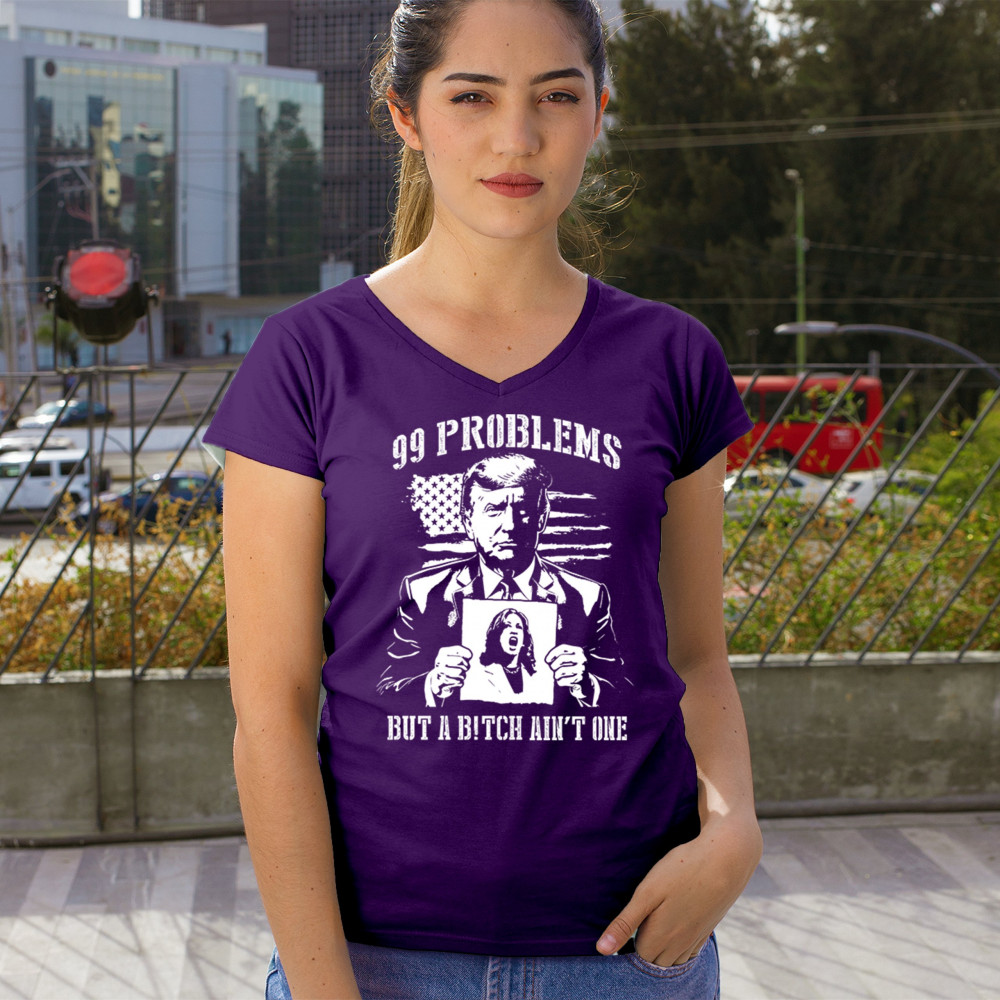 Bold conservative "99 Problems But a B*tch Ain’t One" design featuring Donald J. Trump and an American flag. Perfect for proud Republicans and patriots.