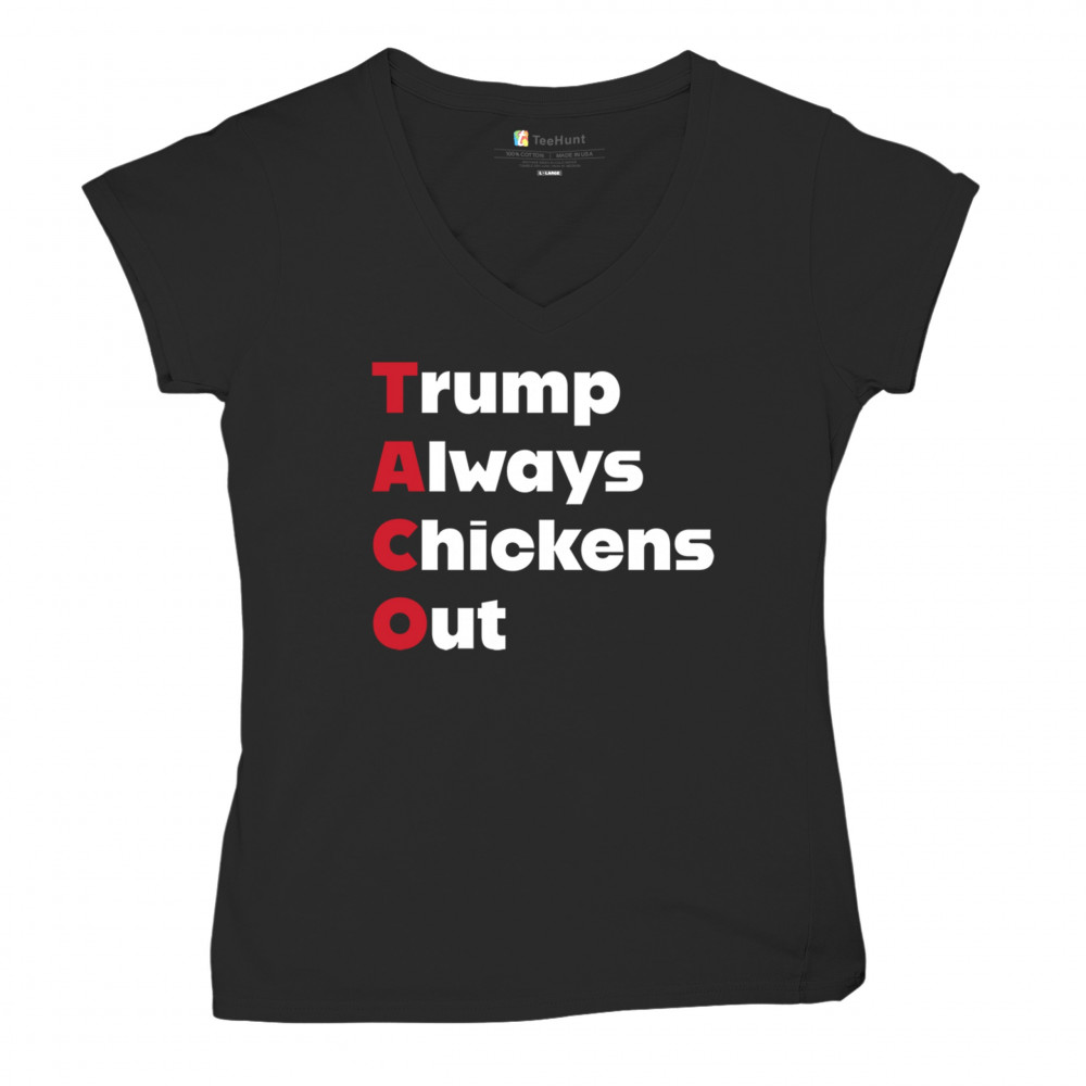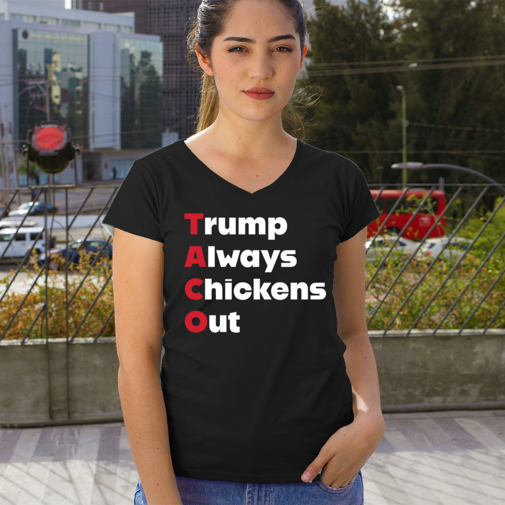 TRUMP ALWAYS CHICKENS OUT women's v-neck t-shirt anti dictator no kings protest black