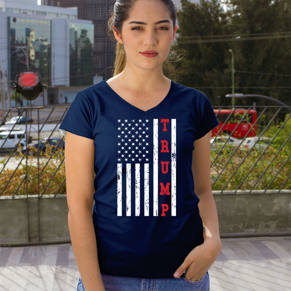 Declare your allegiance to Donald Trump and the Republican cause with our Trump 2024 Flag tee. Featuring a striking American Flag backdrop and 'Trump 2024' emblazoned proudly, this shirt embodies the spirit of Make America Great Again. Send a clear messag