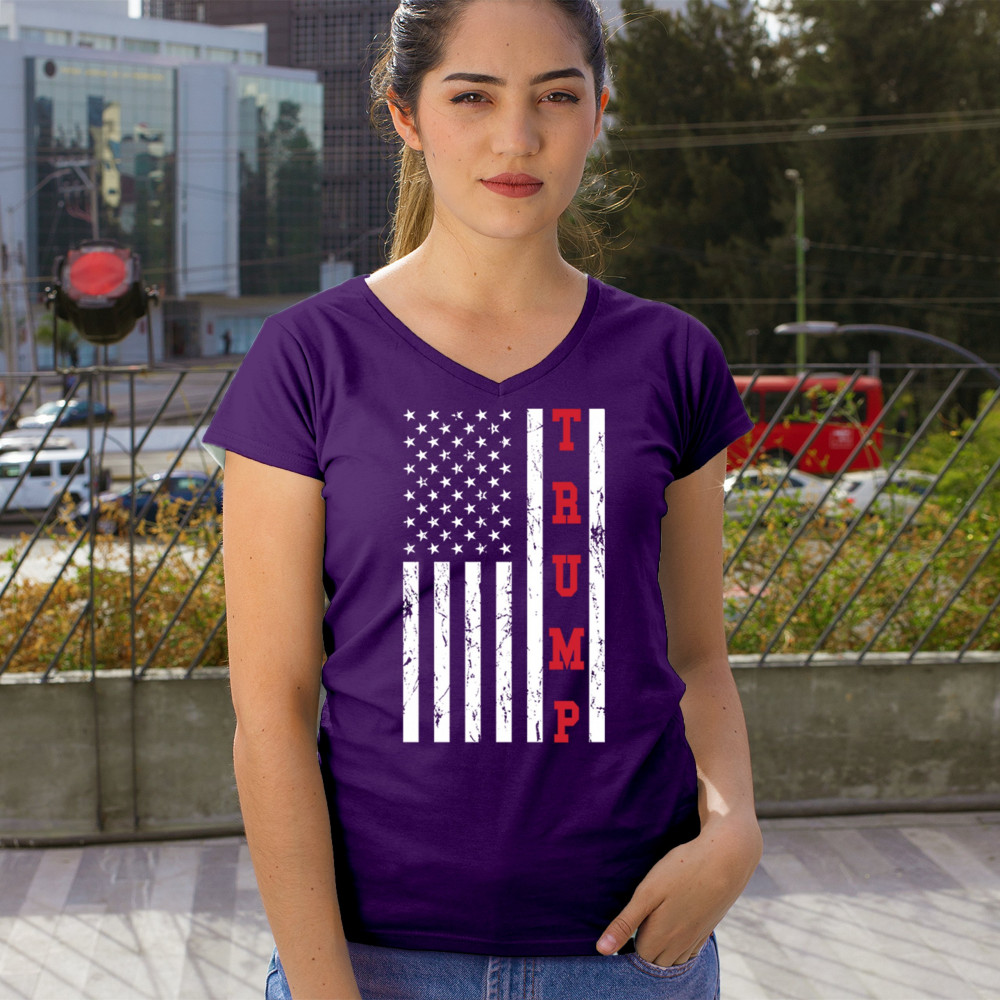 Declare your allegiance to Donald Trump and the Republican cause with our Trump 2024 Flag tee. Featuring a striking American Flag backdrop and 'Trump 2024' emblazoned proudly, this shirt embodies the spirit of Make America Great Again. Send a clear messag