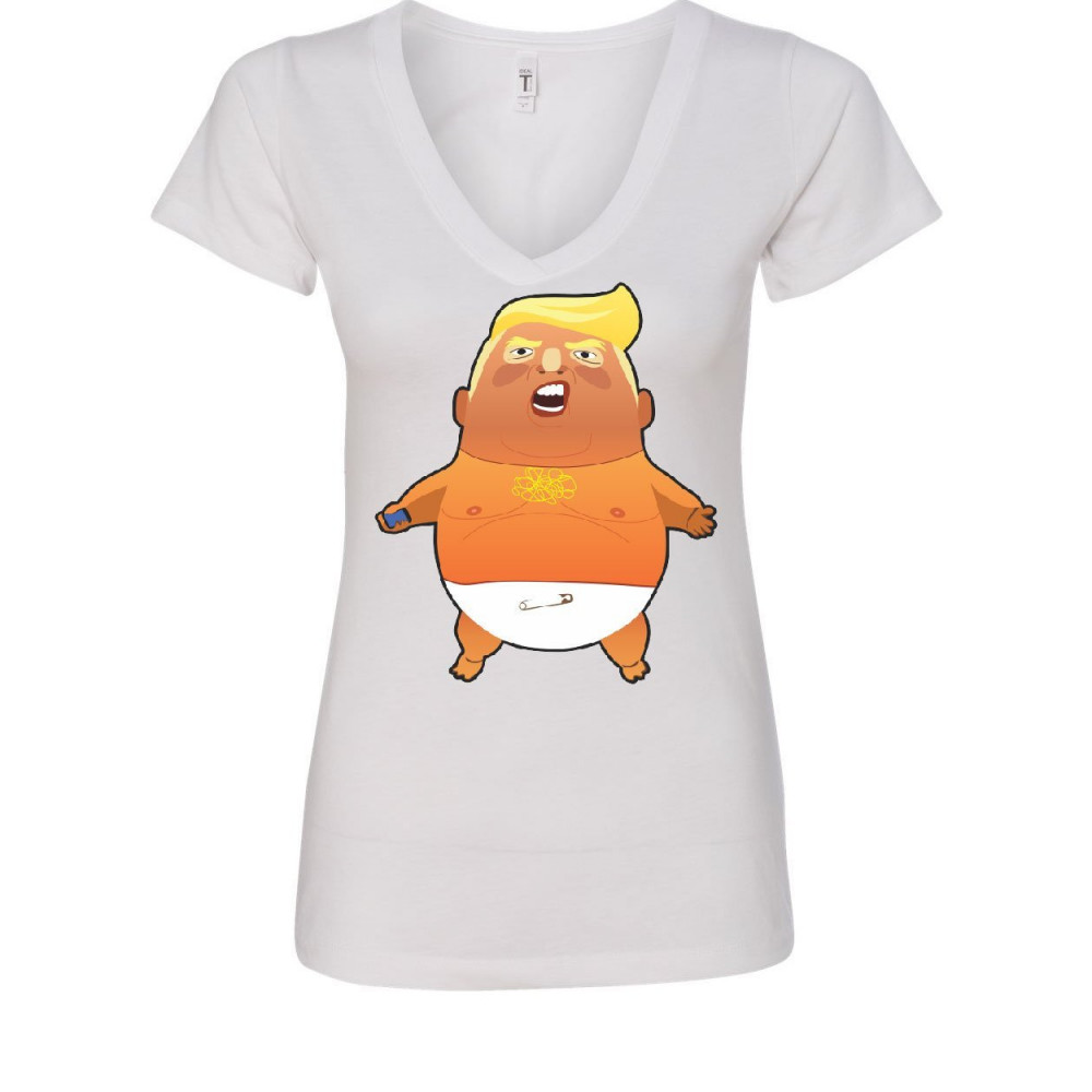 TRUMP BABY BLIMP BALOON trump baby baloon women's v-neck t-shirt anti trump funny impeach resist resign white