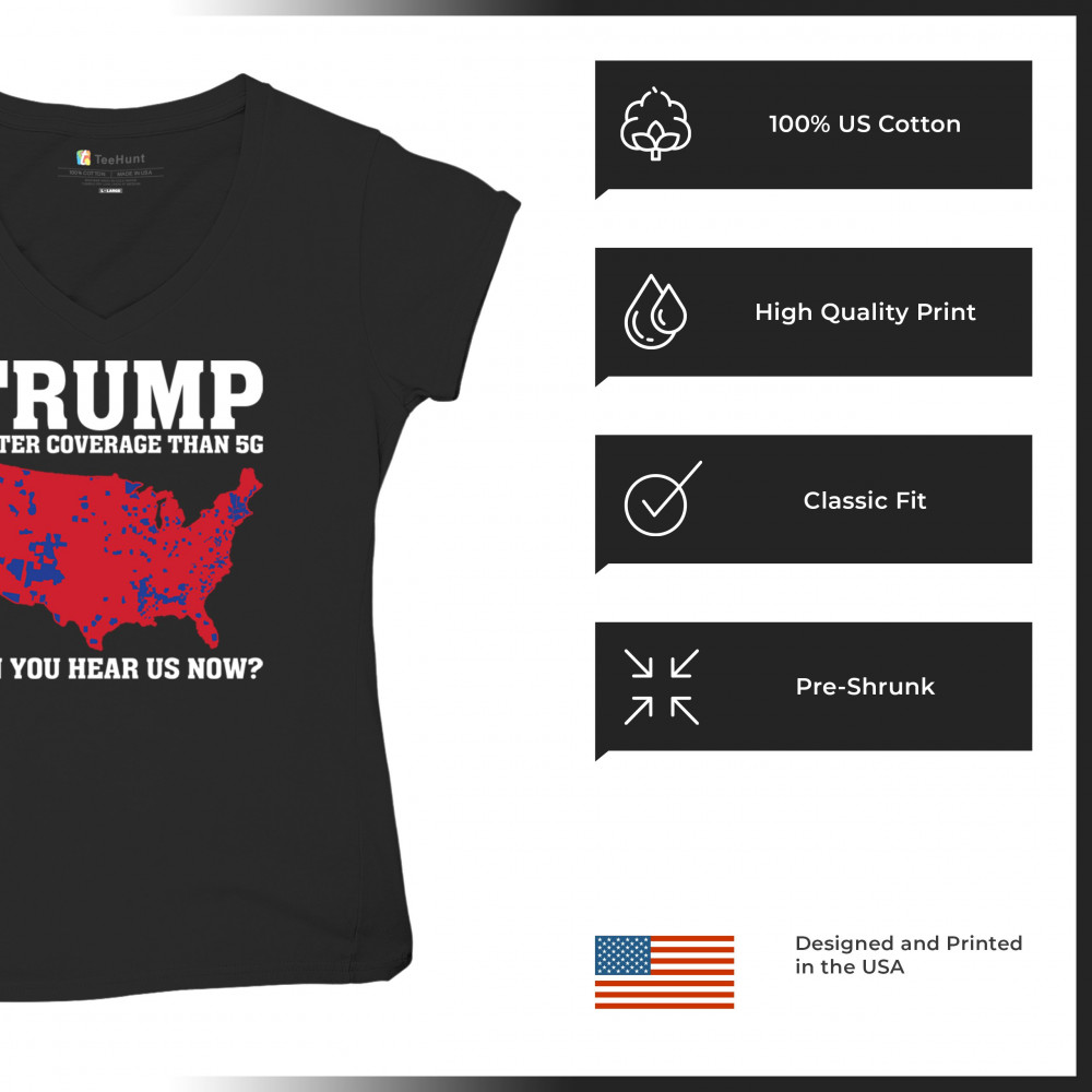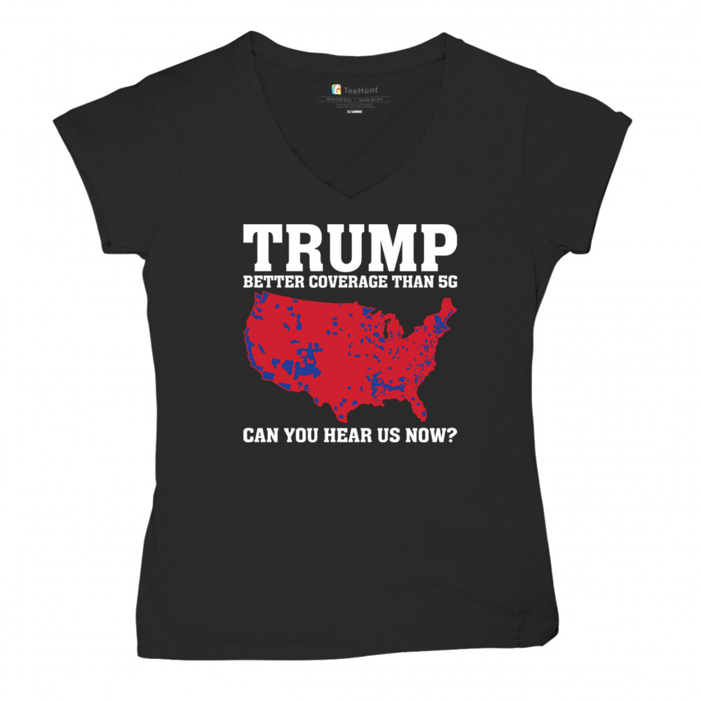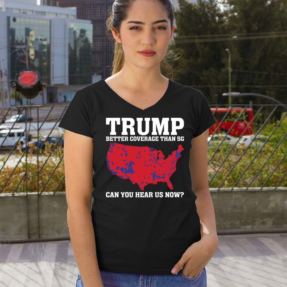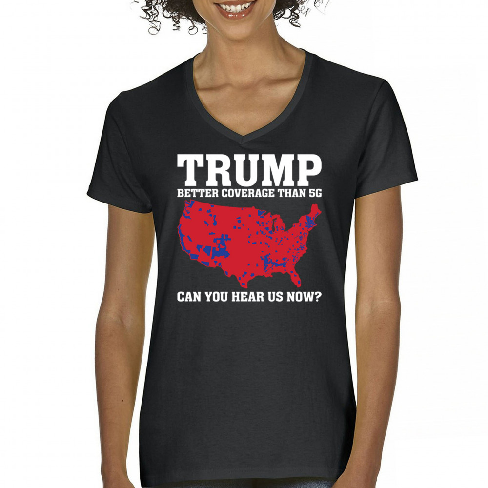 TRUMP BETTER COVERAGE THAN 5G women's v-neck t-shirt maga 47 america first tee black