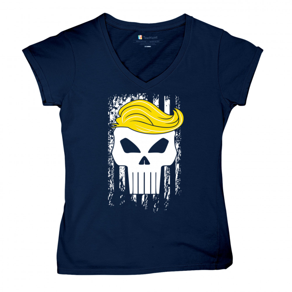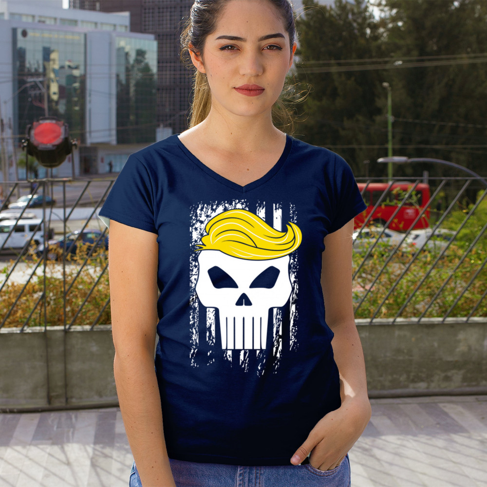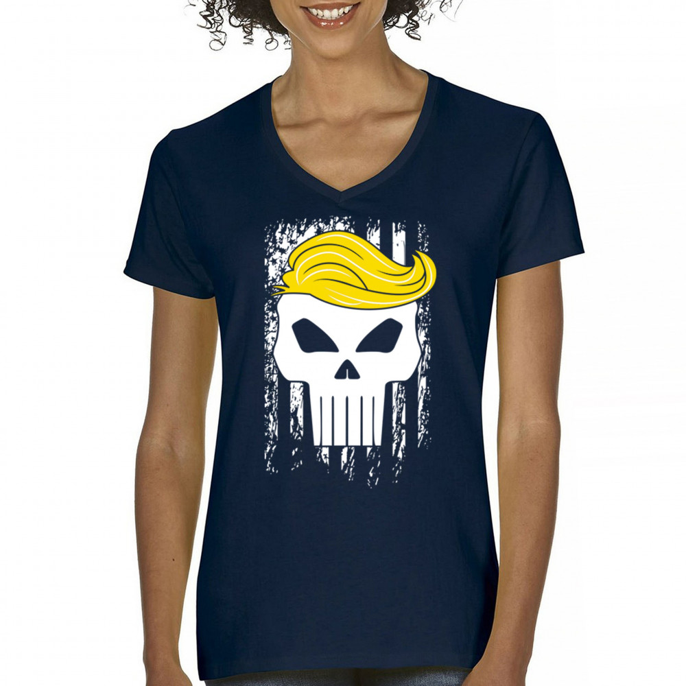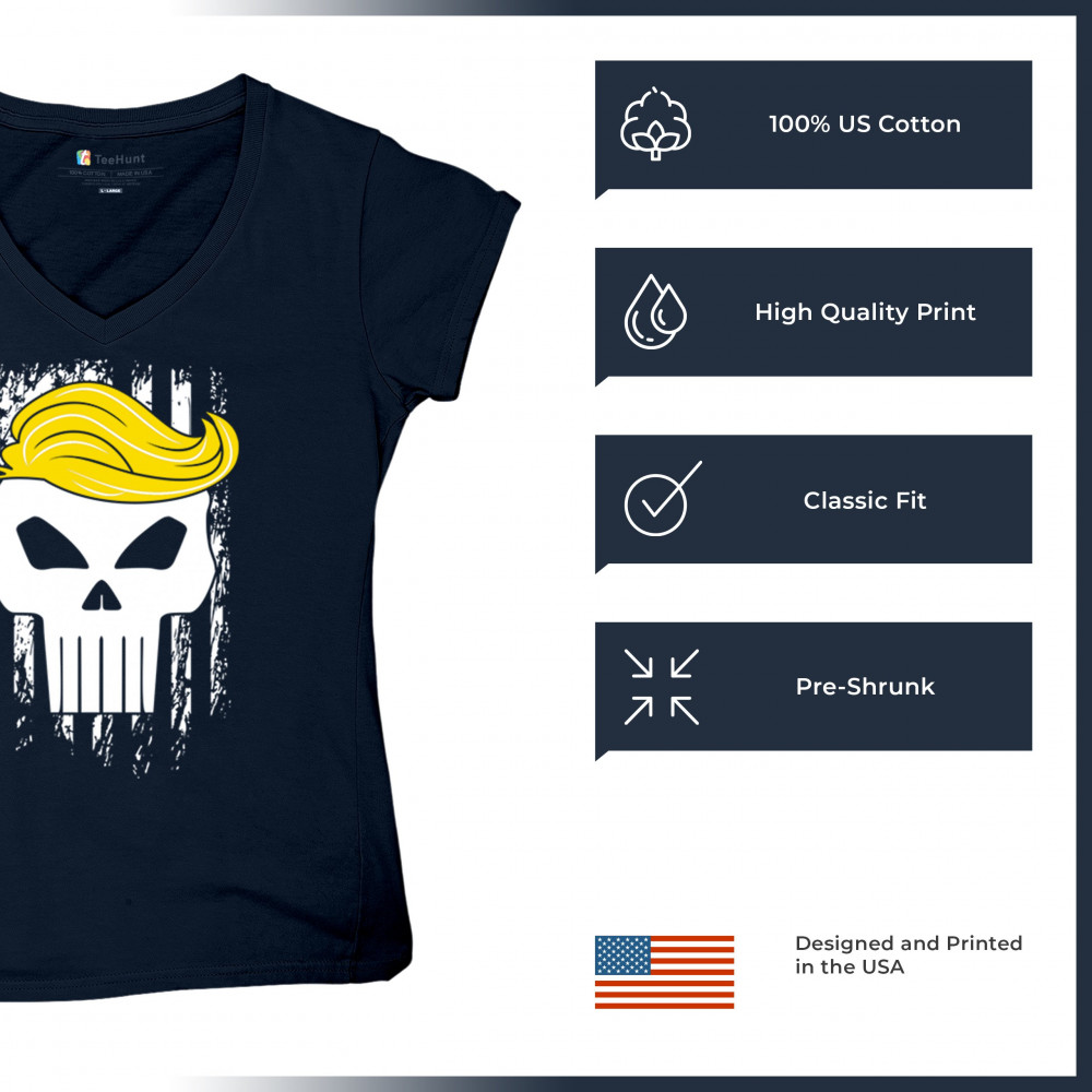 Explore our exclusive design - a symbol of unwavering support for America. Featuring a distressed flag and a skull with Trump's hair, it's perfect for patriotic conservatives