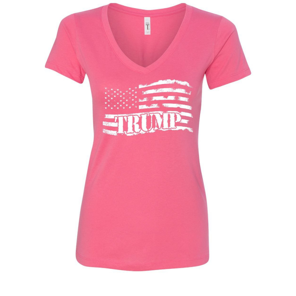 DONALD TRUMP FLAG MAGA women's v-neck t-shirt make america great again pink