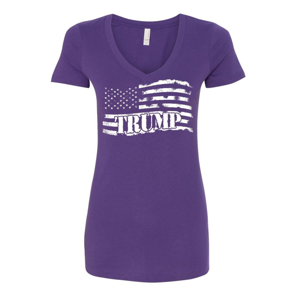 DONALD TRUMP FLAG MAGA women's v-neck t-shirt make america great again purple
