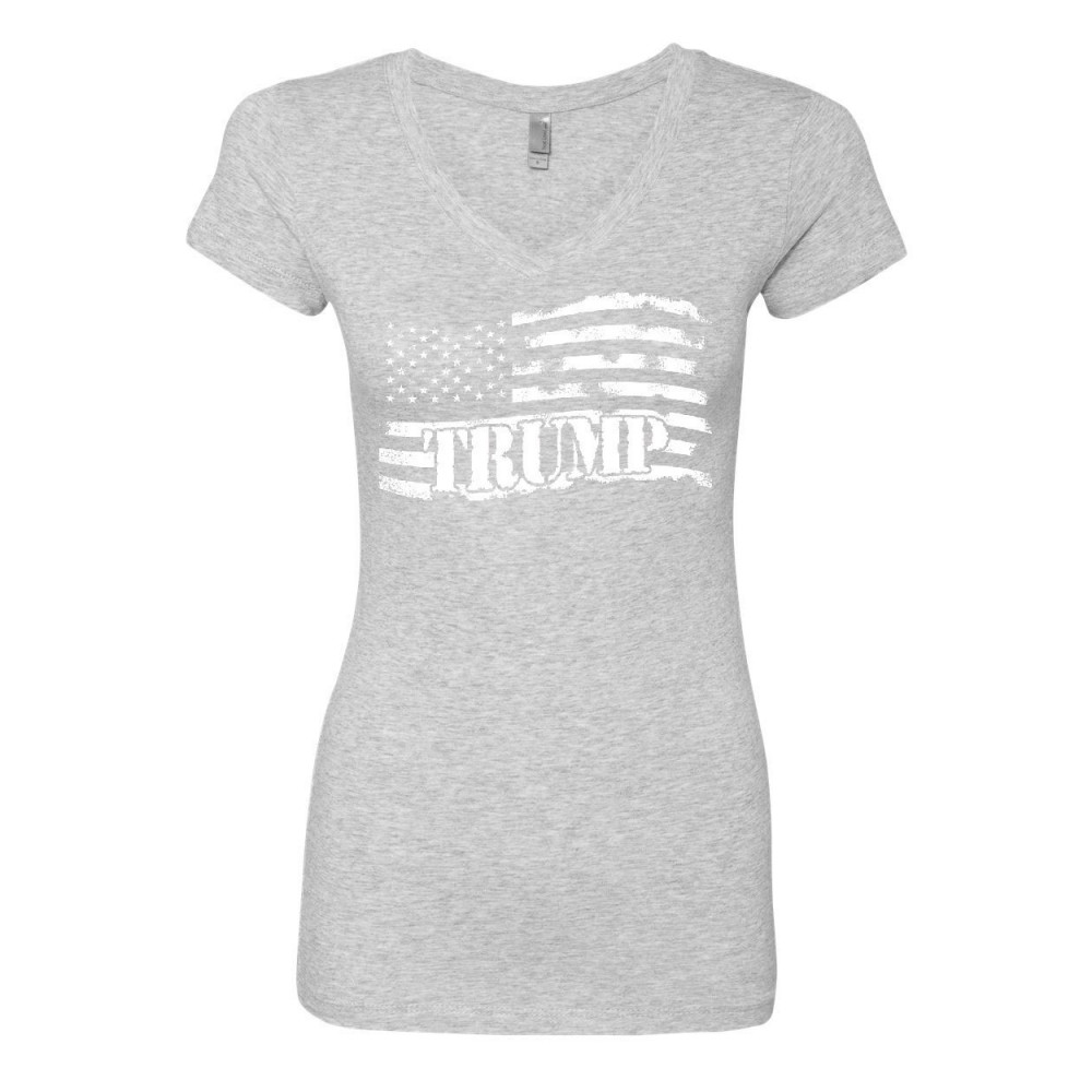 DONALD TRUMP FLAG MAGA women's v-neck t-shirt make america great again gray