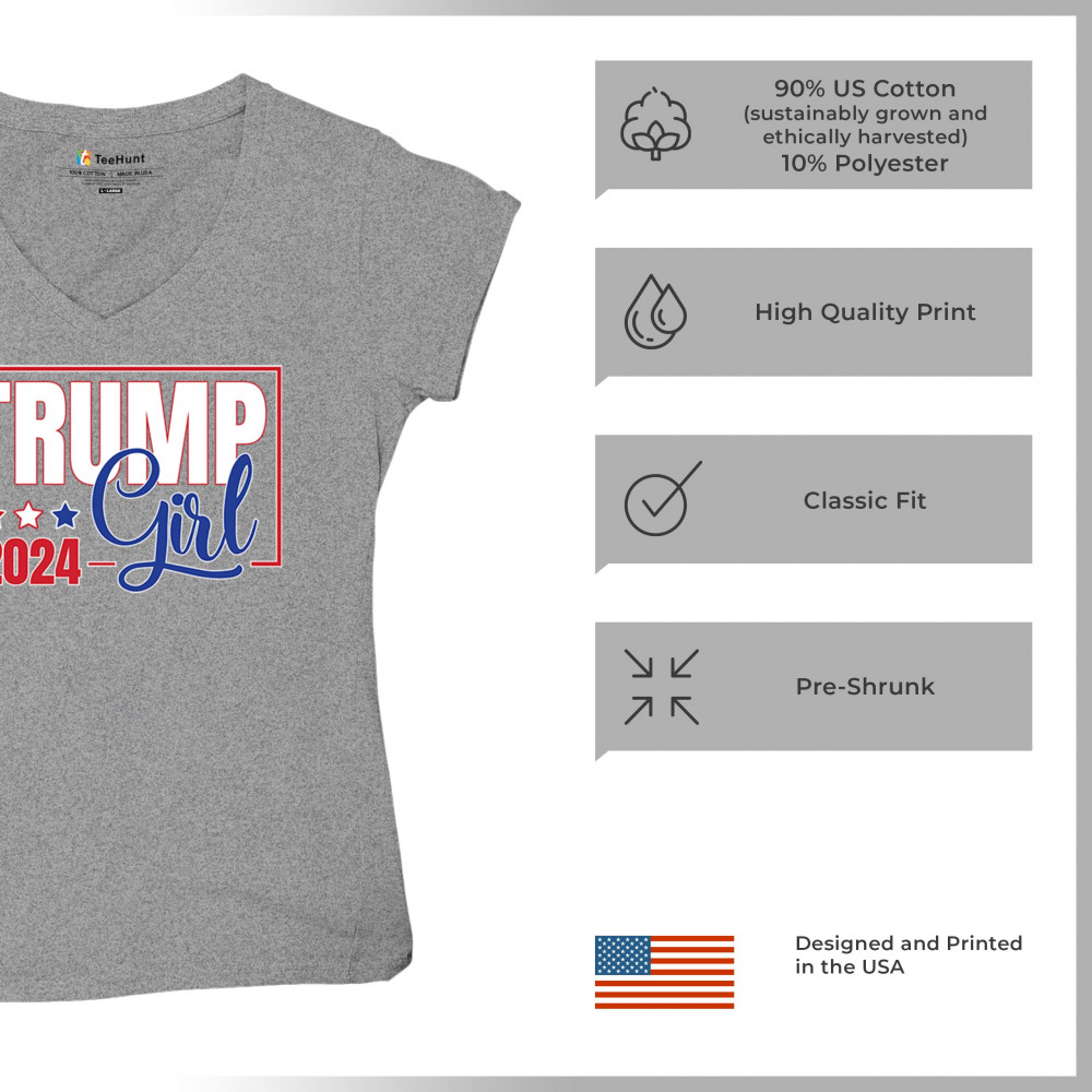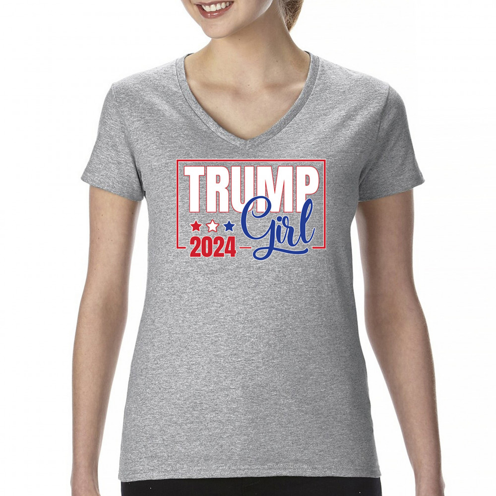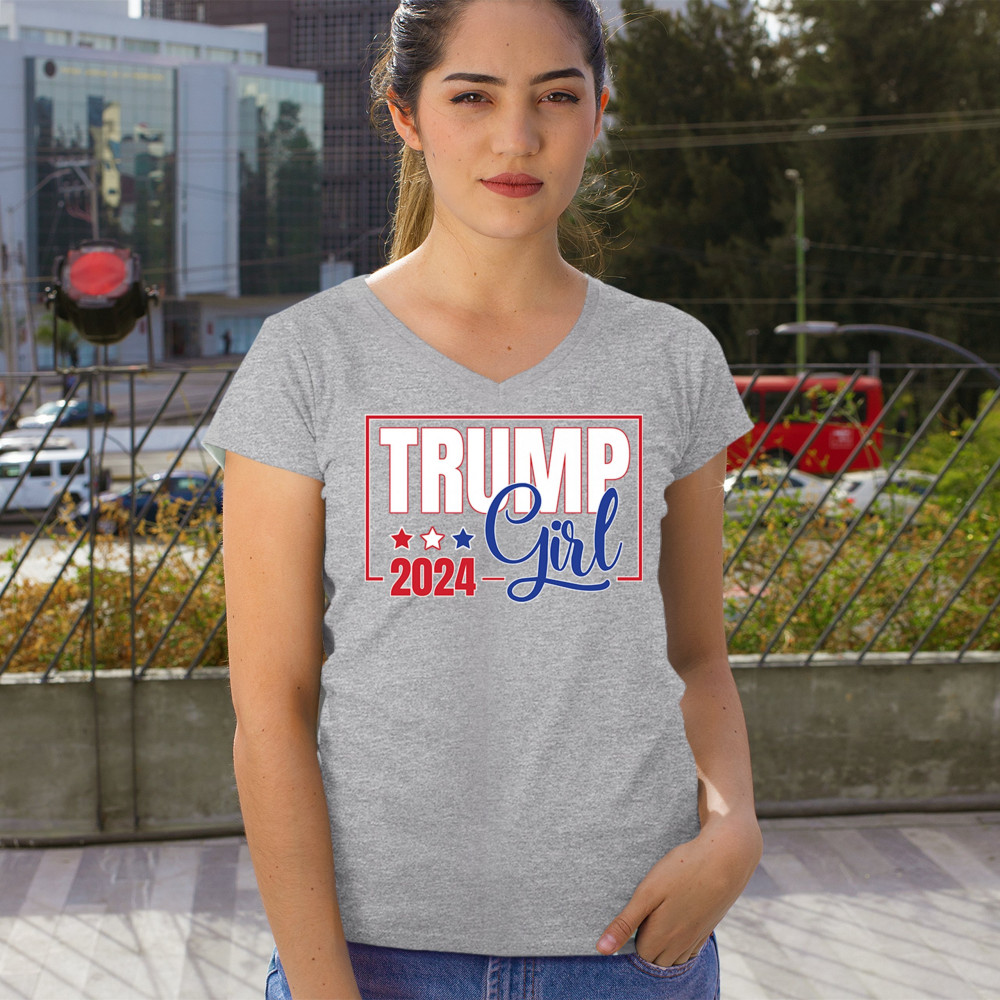 Express your unwavering support for President Trump's reelection with our 'Trump Girl 2024' graphic tee. Show your dedication to conservative values and the America First agenda as a proud Trump supporter. Let your voice be heard as you join the movement