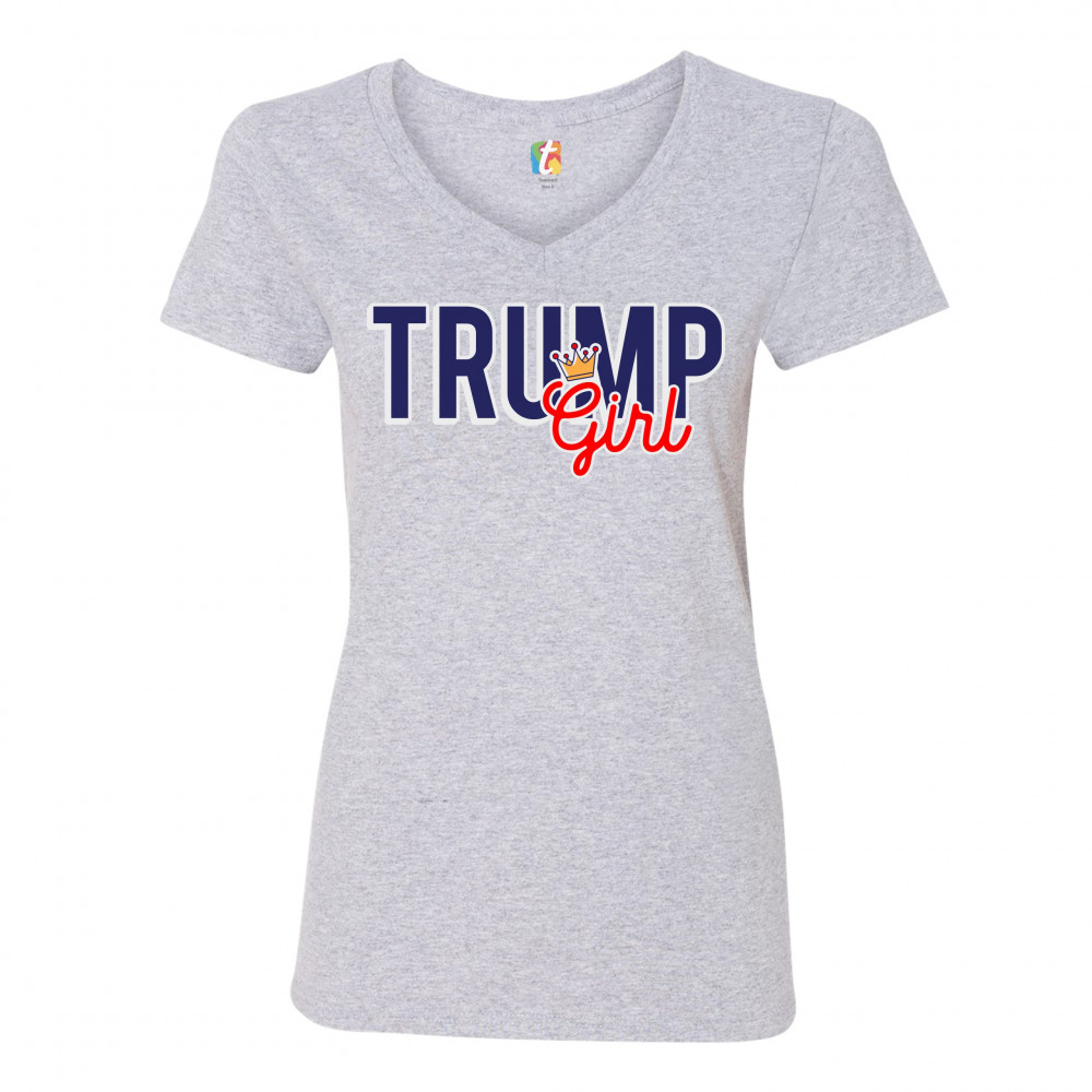 TRUMP GIRL women's v-neck t-shirt keep america great conservative vote red tee gray
