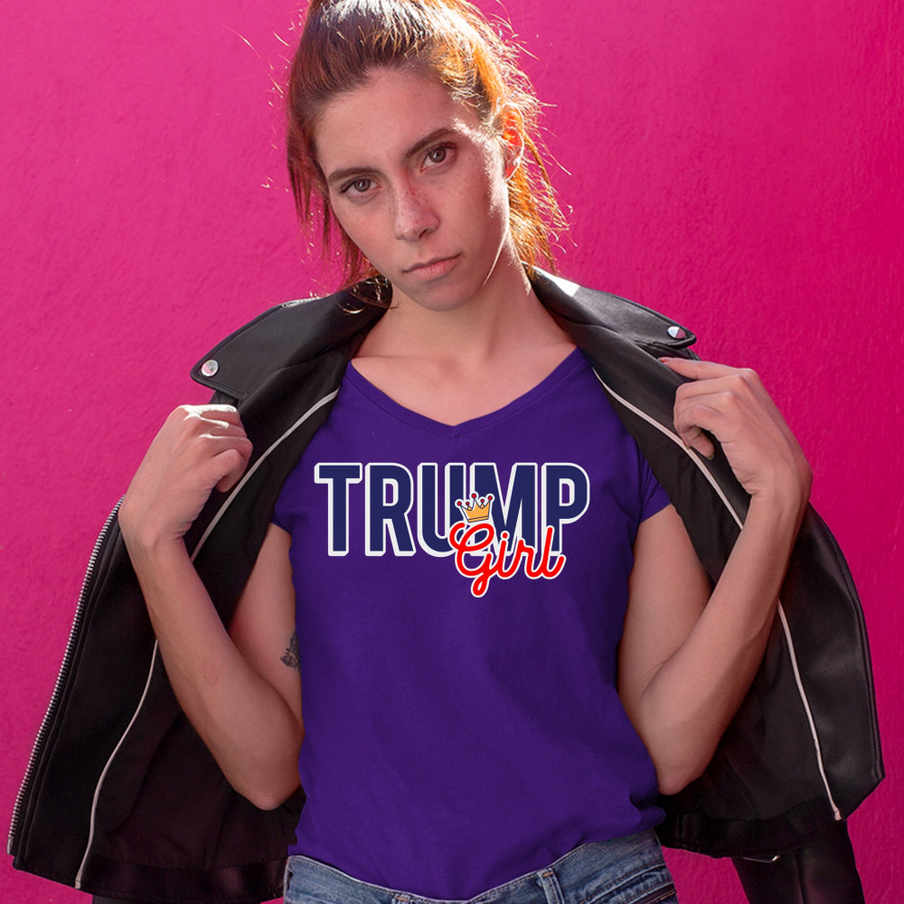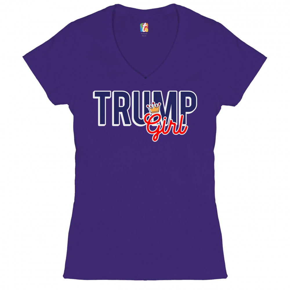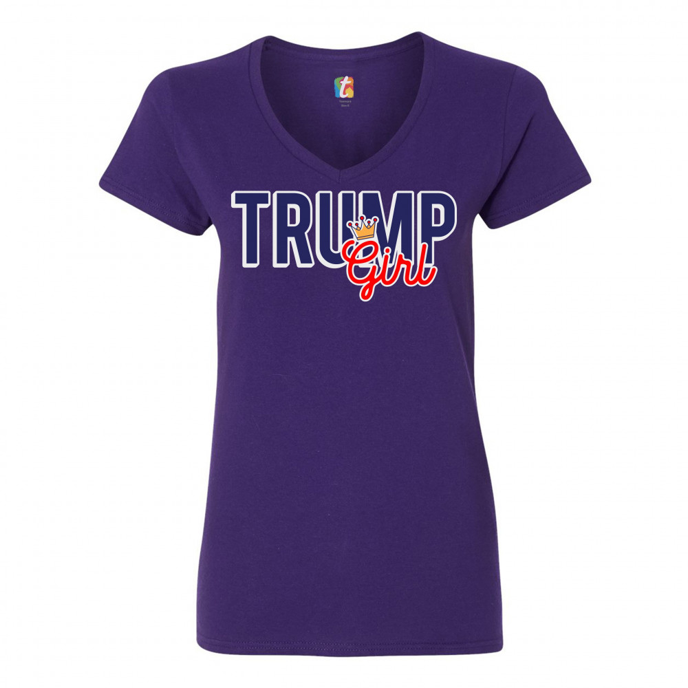 TRUMP GIRL women's v-neck t-shirt keep america great conservative vote red tee purple