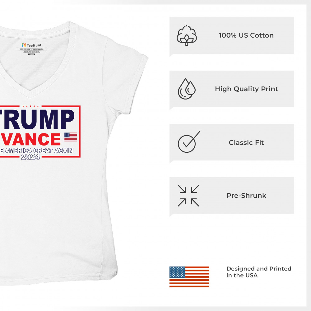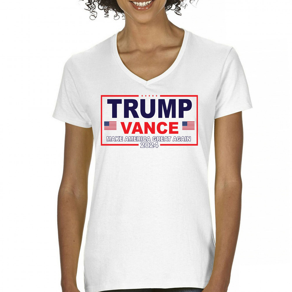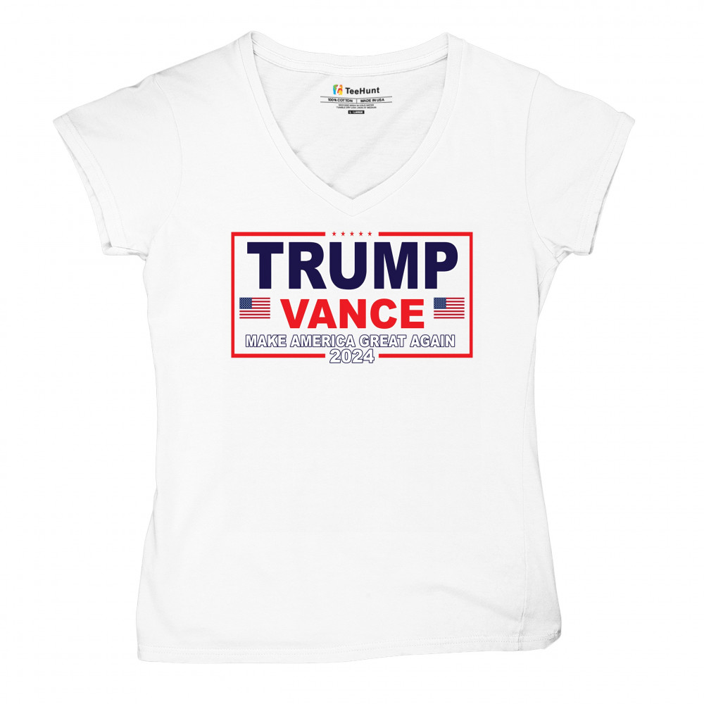 Showcase your support for the Trump-Vance 2024 campaign with this bold patriotic design featuring the American flag and "Make America Great Again" slogan.