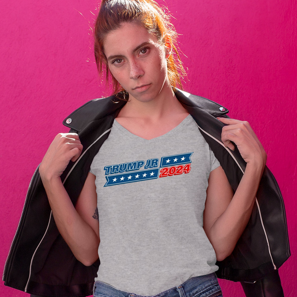 DONALD TRUMP JR 2024 trump jr 2024 women's v-neck t-shirt conservative keep america trump tee gray