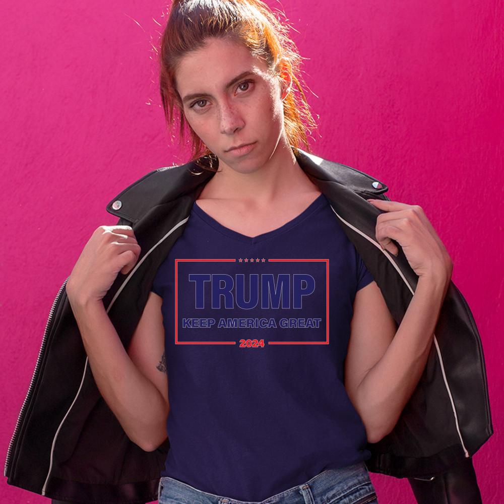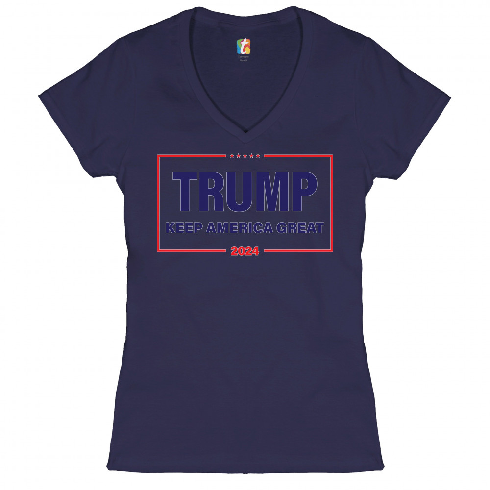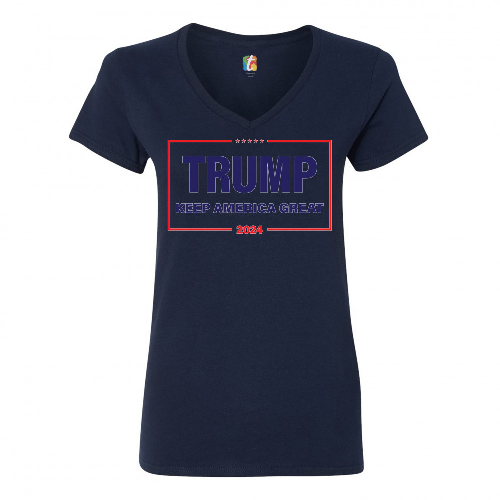 TRUMP KEEP AMERICA GREAT 2024 women's v-neck t-shirt re-elect donald trump tee navy blue