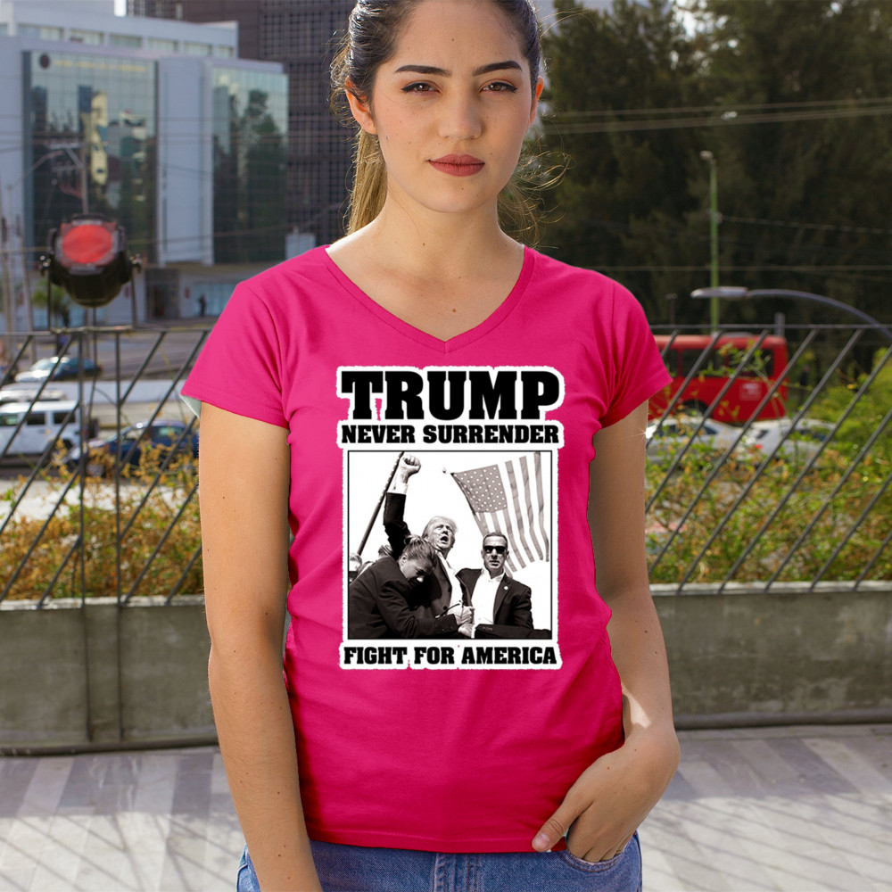 Express your unwavering support with the bold "Trump Never Surrender" design, perfect for rallies and everyday wear. Durable and stylish, show your patriotism proudly.