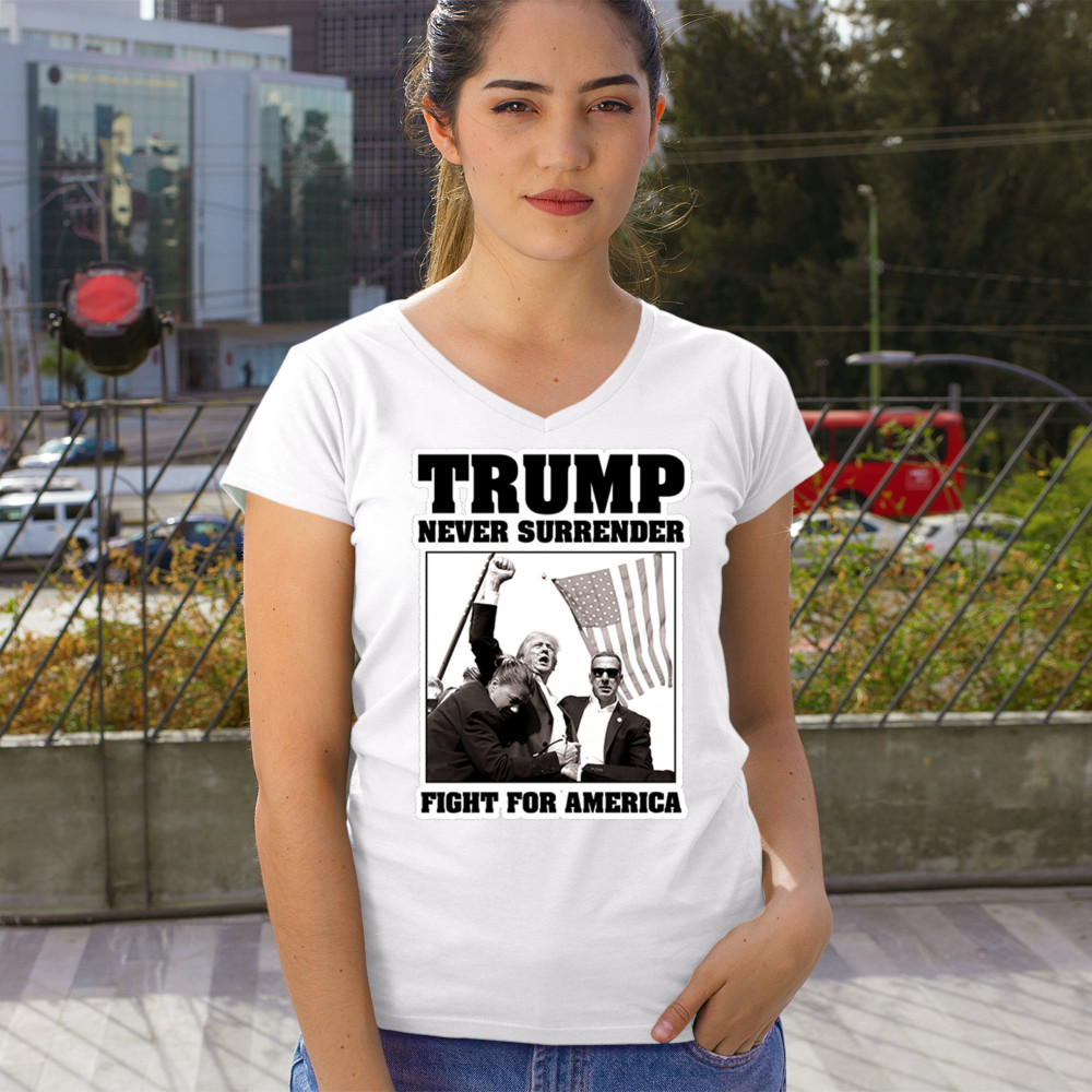 Express your unwavering support with the bold "Trump Never Surrender" design, perfect for rallies and everyday wear. Durable and stylish, show your patriotism proudly.